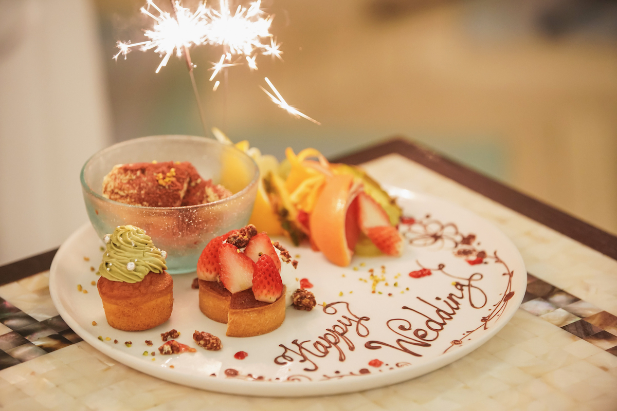 松田さんの心温まるお話に、会場のもらい泣きモードも更に高まりました。お店からも特別にウェディングプレートで祝福をいただきました!