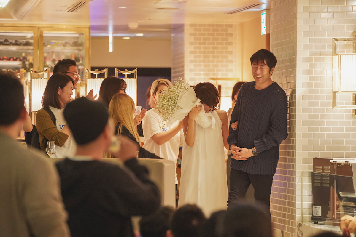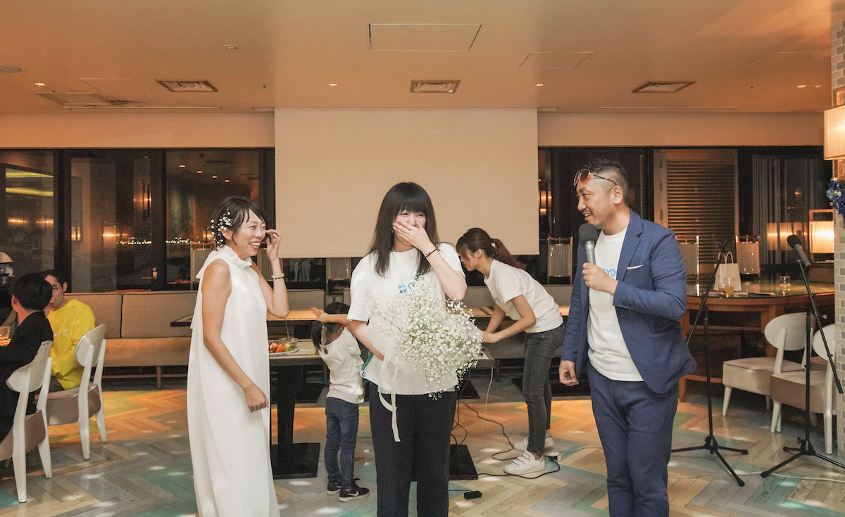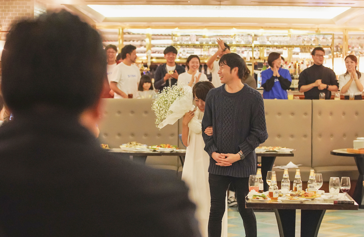 入籍はしたものの、披露宴は行っていなかったお二人。ささやかながらメンバーからのサプライズに、とても喜んでくれました。砂川さん、富橋さん、改めてご結婚おめでとうございます!末長く、お幸せに!