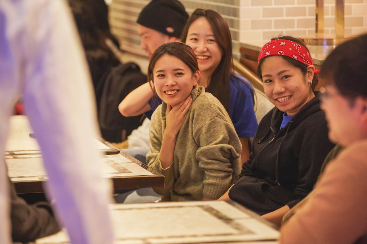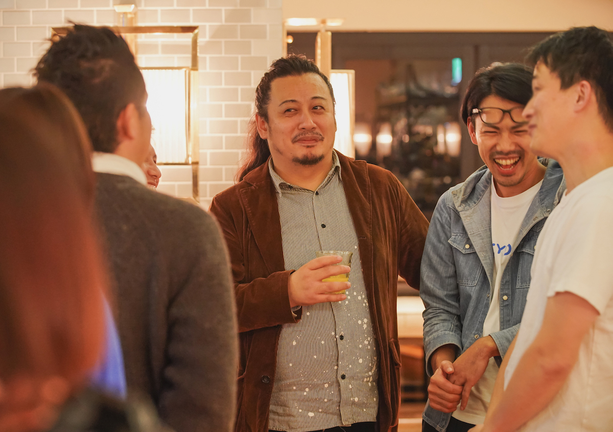 忘年会中も笑顔が絶えなかったカズトさん。(左)お話からも、会社をとても大切にしていることが伝わりました。