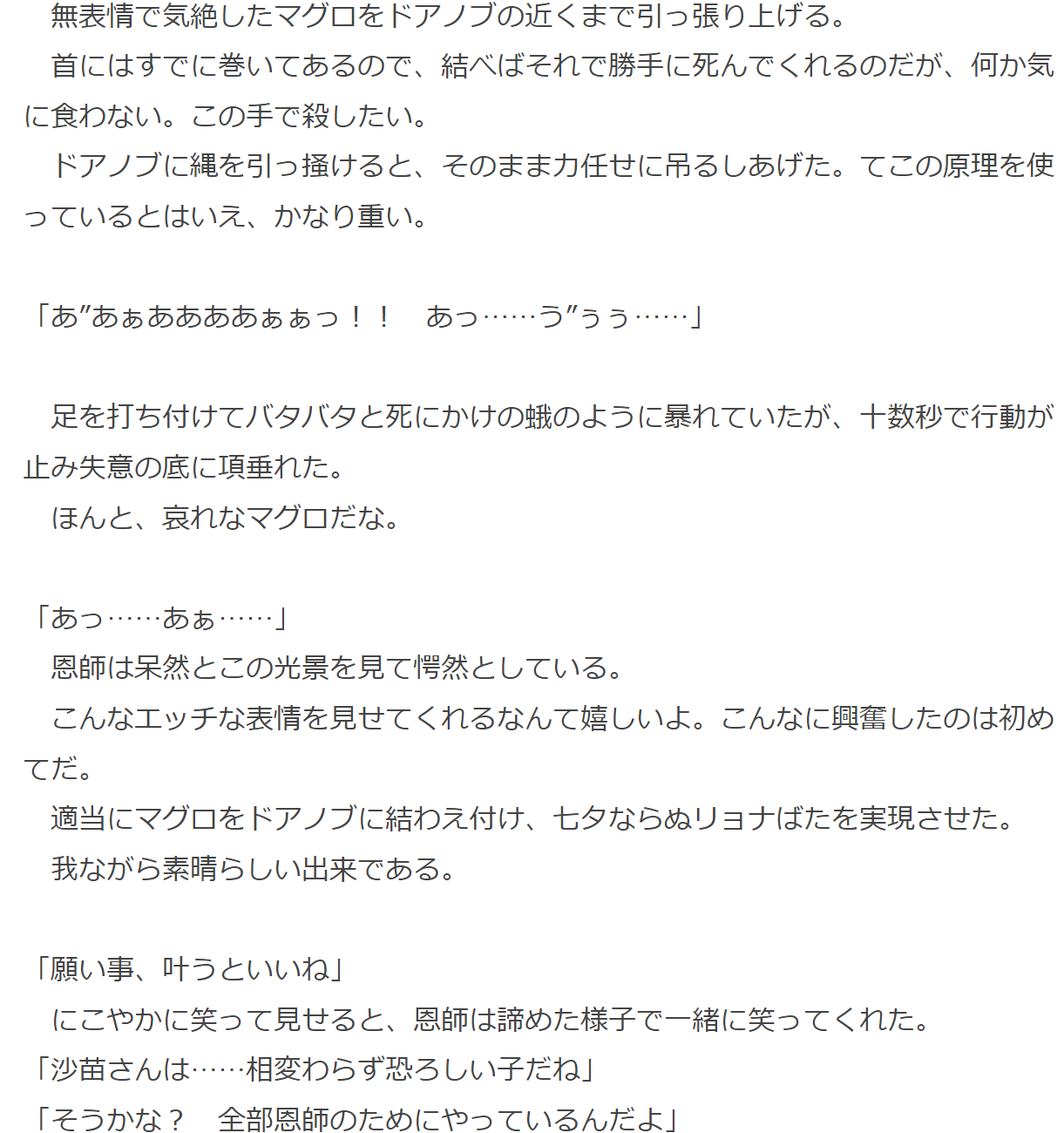 ※リョナばた……身体に文字を書き、それを短冊に見立てて吊るす行為