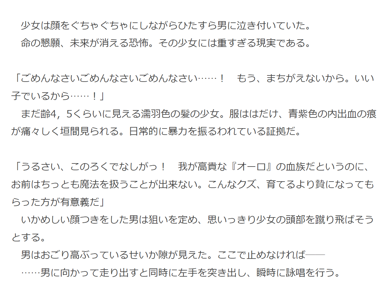 ↑『底辺と呼ばれた魔術師が、最強のロリっ娘魔術師を育てることになりました。』の冒頭個所。
