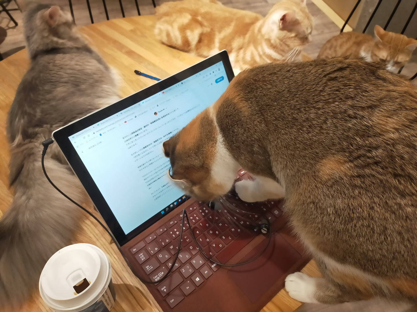 たまにリモートワークもあります。相場追って文章書くだけなら猫カフェでもできますしね。1時間くらい猫に妨害されます。