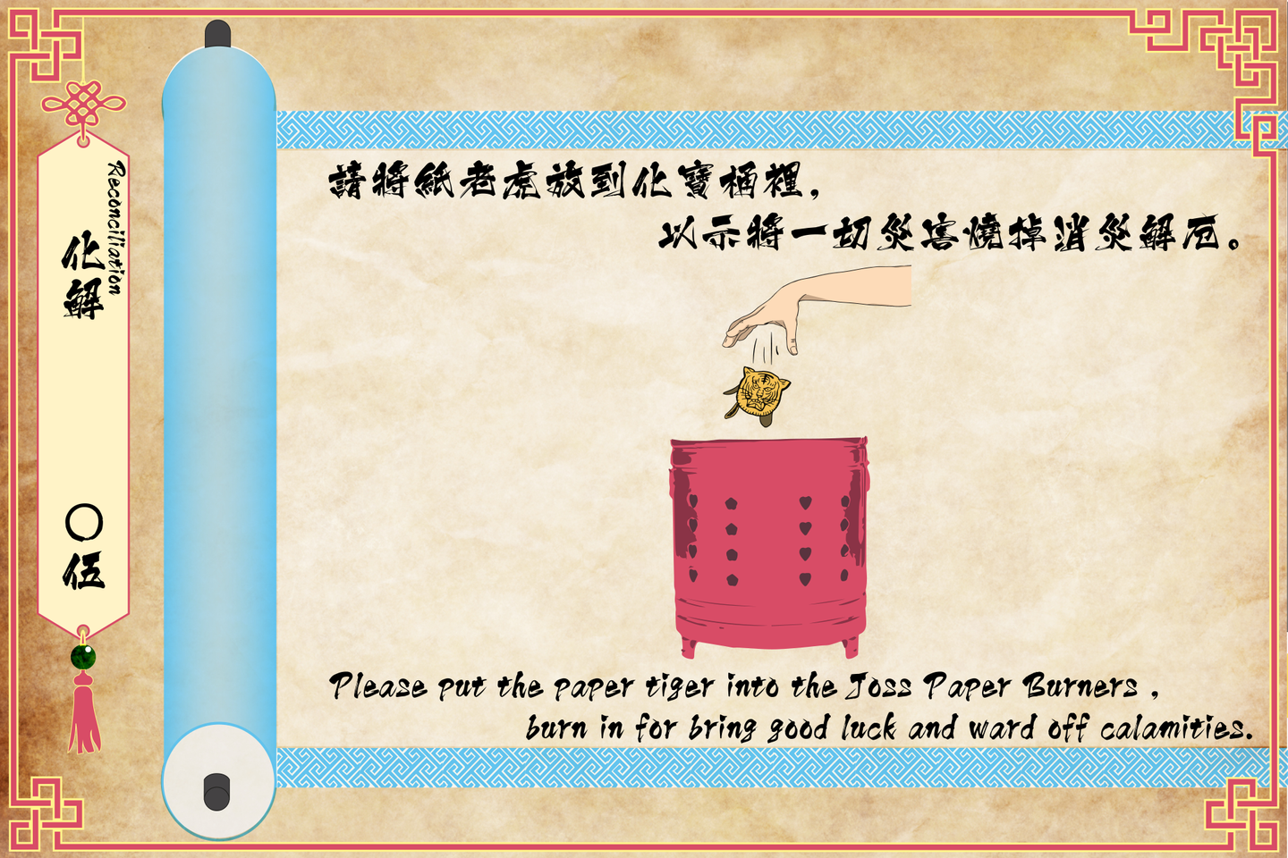 退散役の協力を得て、システム内に実際「打小人」の儀式中に唱える呪文を収録しました。体験コースが終わった後紹介ビデオが流れ、インスト―レーションを通じて「打小人」を存分に楽しめます。