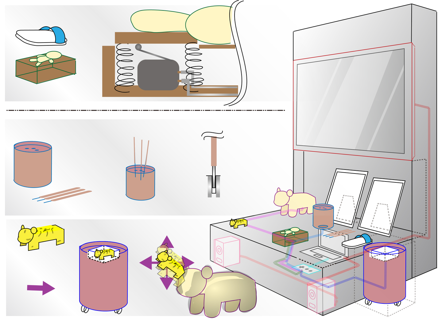 機材:PC(Windows/Mac対応)、スピーカー、モニター、MakeyMakey、センサー、プロジャクタ
