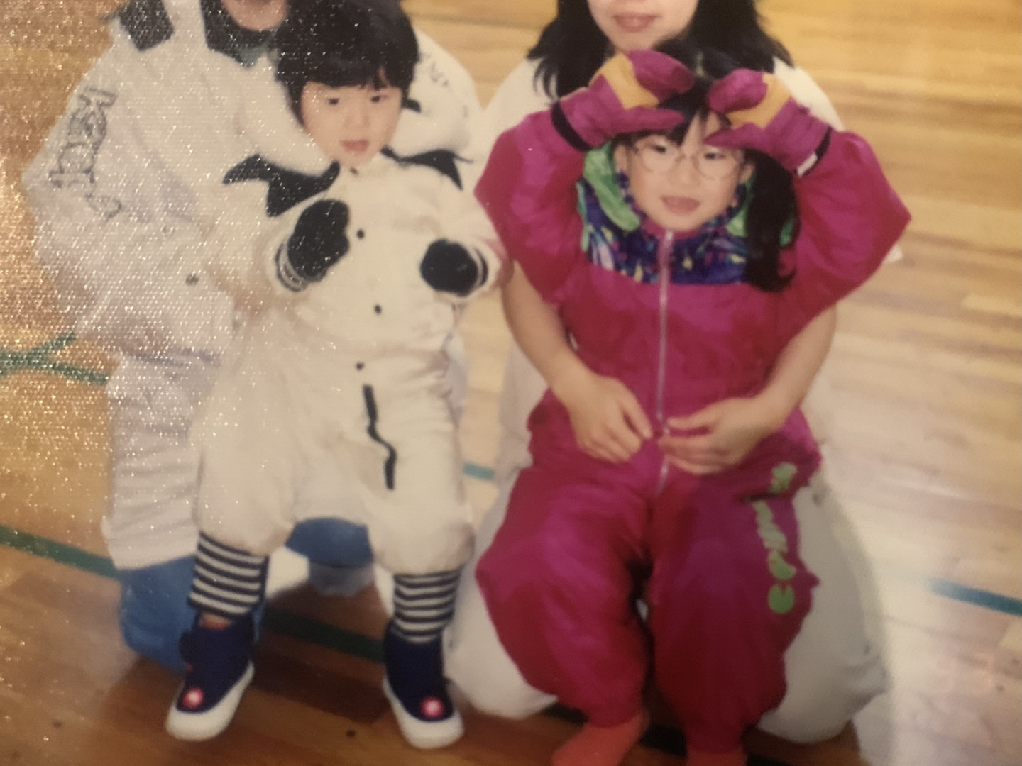 大好きな弟と大好きだったスキーウェア(その証拠にハートポーズ♡、たぶん。)!😊😊そして、メガネ女子。今は裸眼です!運転免許も裸眼で取得!自然治癒、万歳。