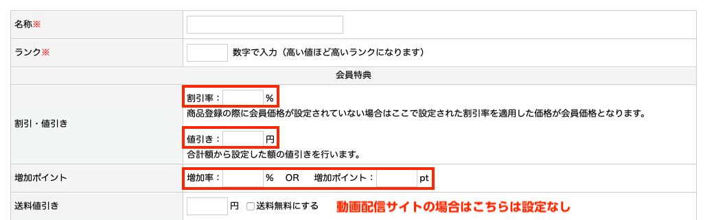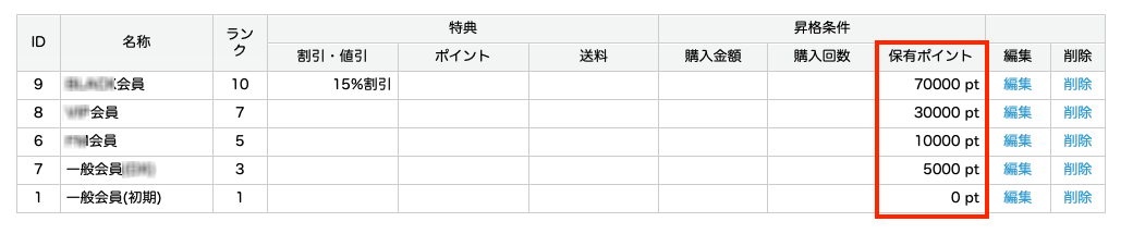 また、ランクに応じて割引比率なども設定が可能です。