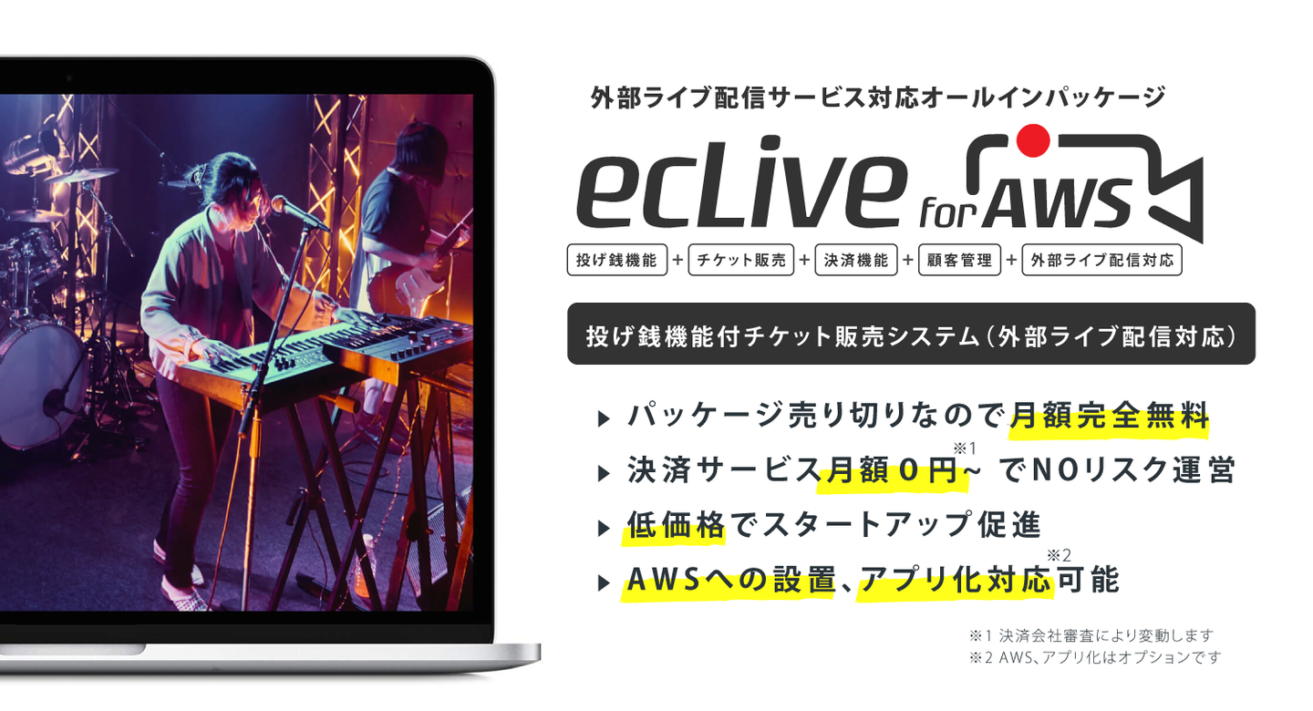ecLive – ecLive 投げ銭機能付きチケット販売サイト構築CMSパッケージ(外部ライブ配信対応)