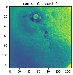 plt.title('correct: {}, predict: {}'.format(tlst[1], tlst[2]))