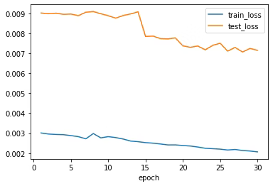 print('{}epoch : train_loss:{}, test_loss:{}, test_acc:{}'.format(