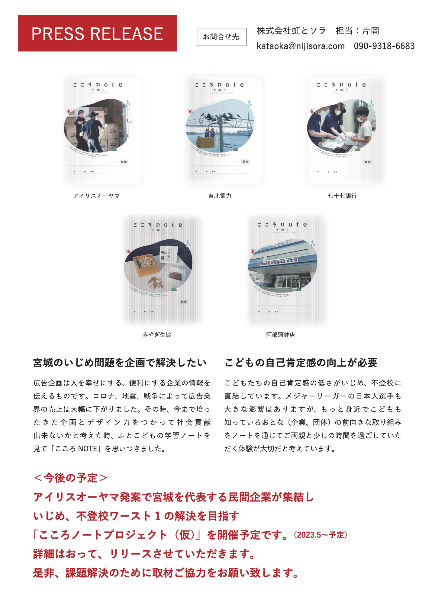 宮城のいじめ、不登校ワースト1の解決を目指す「こころノート」を企画しました。