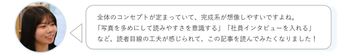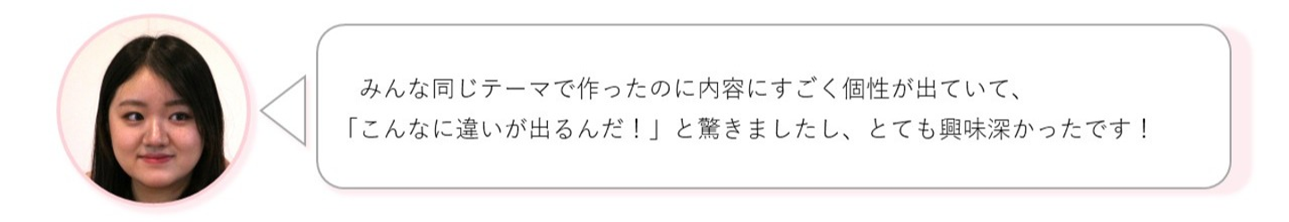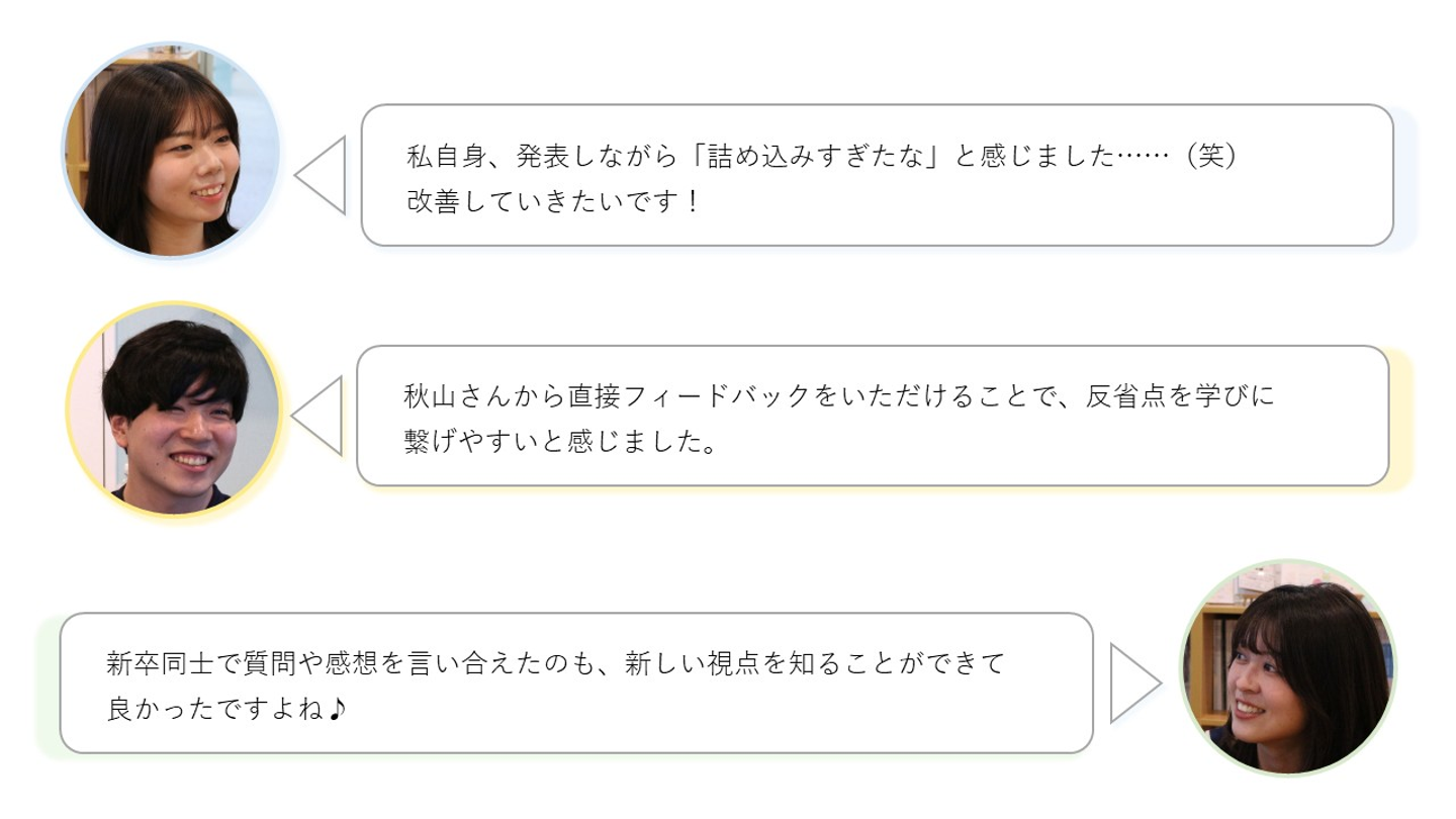 また、「個性や企画性があるものをたくさん提案してくれて、聞いていて面白かったです!」という自信につながるフィードバックもありました!
