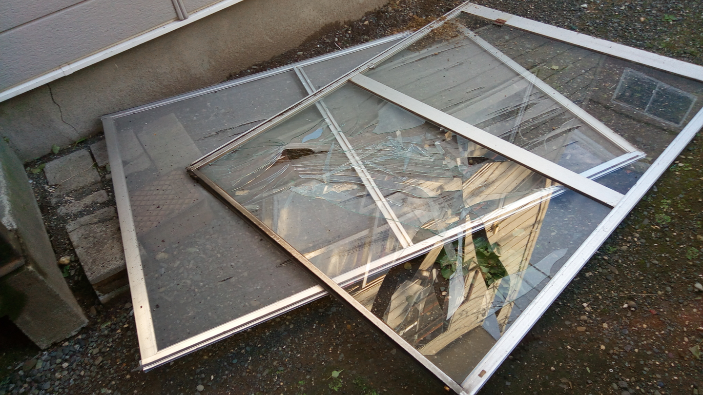 家に帰り着くと、自分の部屋から窓ガラスが落ちていました。
