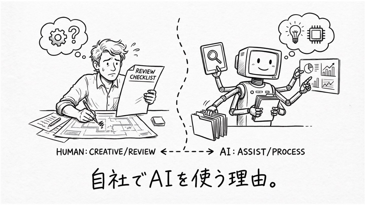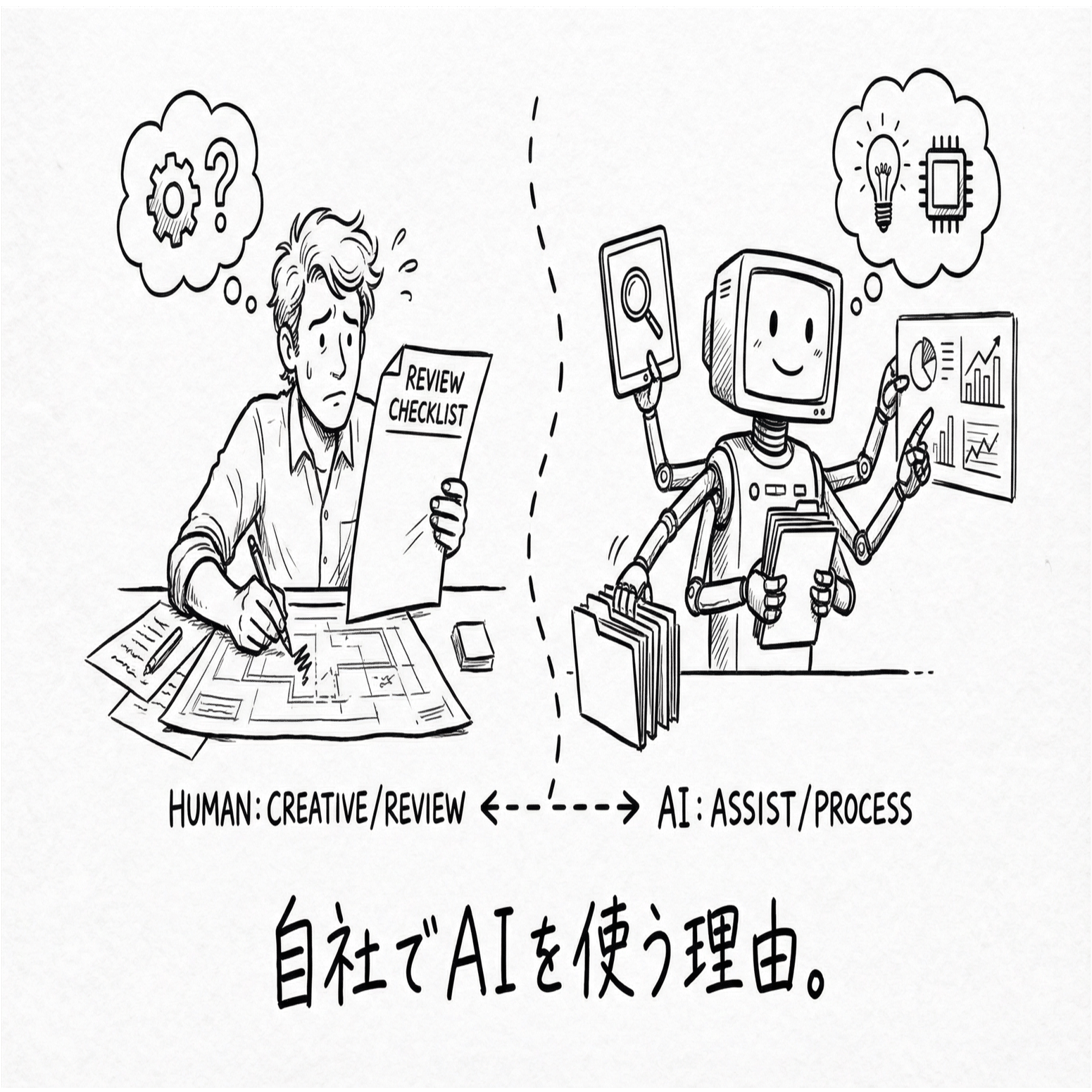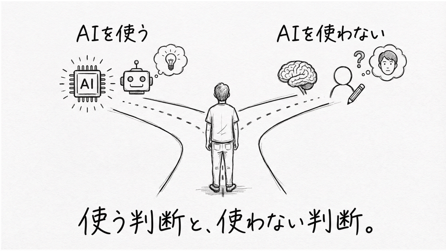 設計と判断の部分は人が行い、生成と作業をAIに任せるという役割分担です。