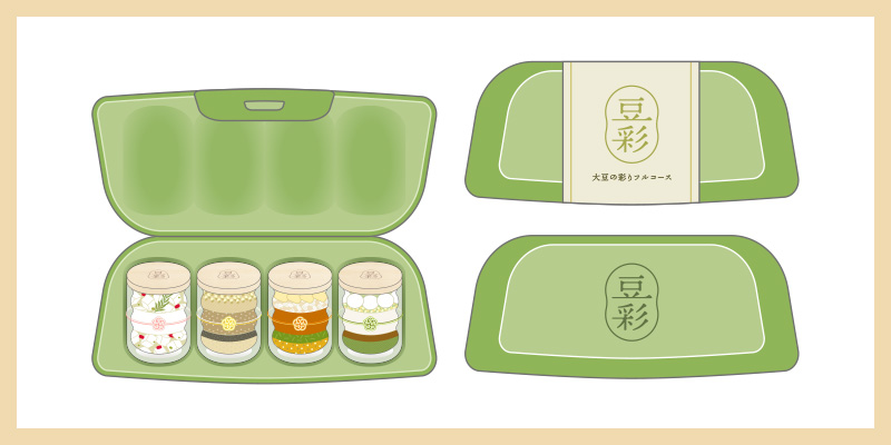 グループワークではチームリーダーを務め、意見を引き出してまとめ、資料化やリサーチを担当しました。アイディアは面白いものをたくさん持っていながらも控えめなメンバーが多かったため、丁寧に聞き取りながら全員が納得できる形に整理し、最終的な決定も「それぞれの強みを活かす」ことを意識しました。私たちのグループには、栄養士や食品関係に勤めている方がいたので「豆彩(まめいろ)」という瓶詰め商品を企画・デザインしました。
