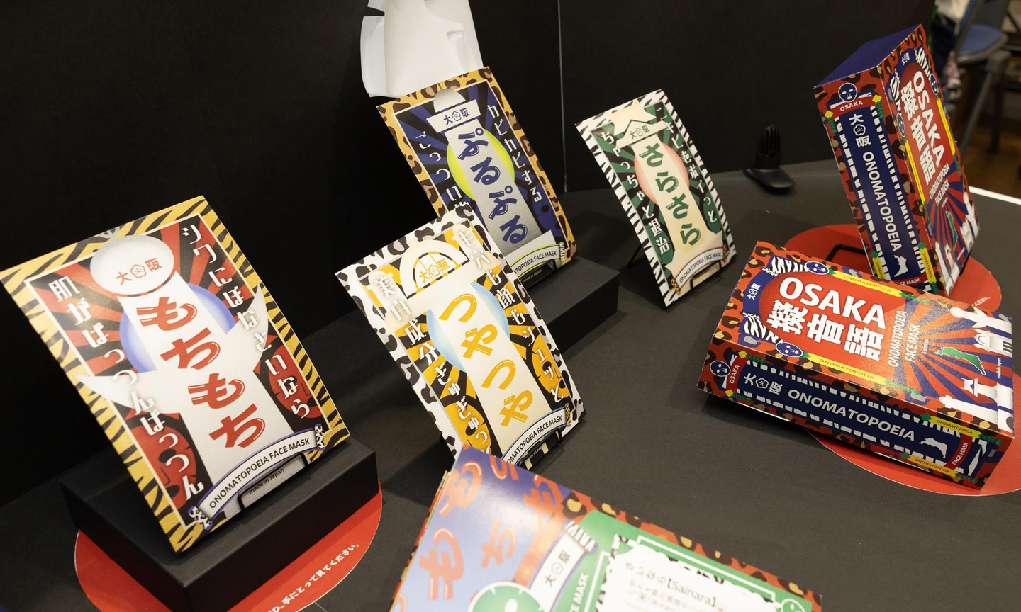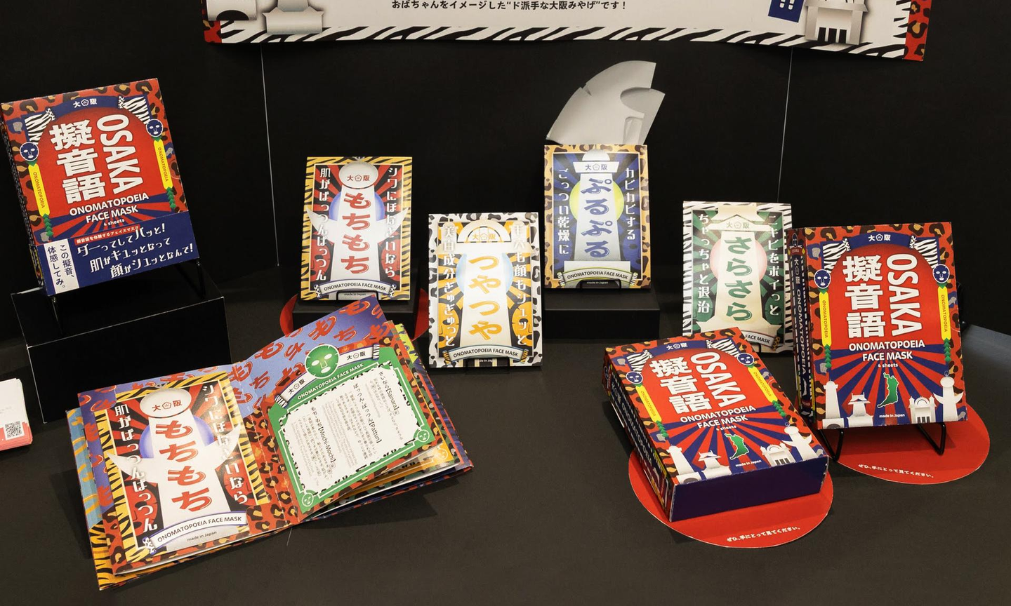 着目したのは、大阪人特有の「テキトーなのに伝わる」独特のコミュニケーションスタイル。日本語は他言語よりも擬音語(オノマトペ)が豊富で、中でも特に関西人は擬音語の使用が多いと言われています。また、美容関係の商品では擬音語がよく使われていることに気づき、フェイスマスクを題材に選びました。それぞれの効能を擬音語でユーモラスに表現することで、「なんかよく分からんけど分かってまう」という大阪の文化を具現化しました。