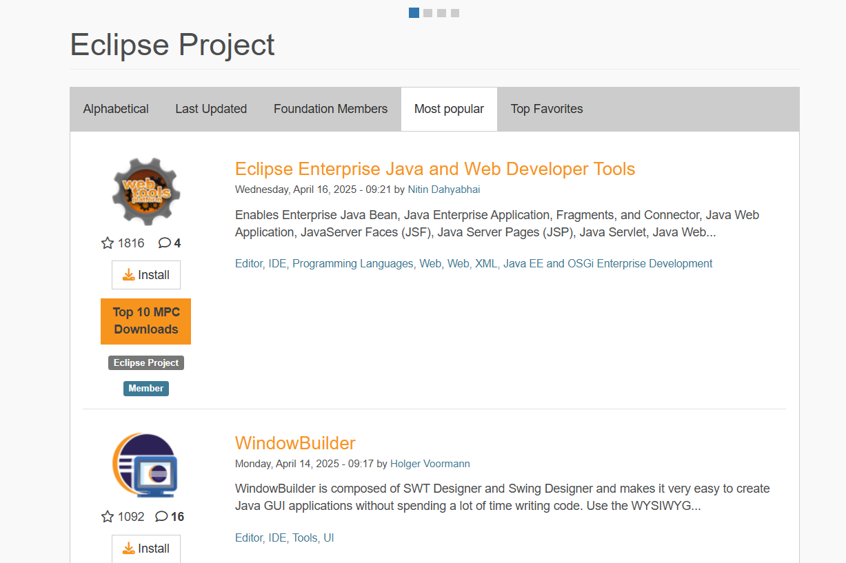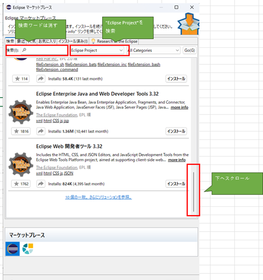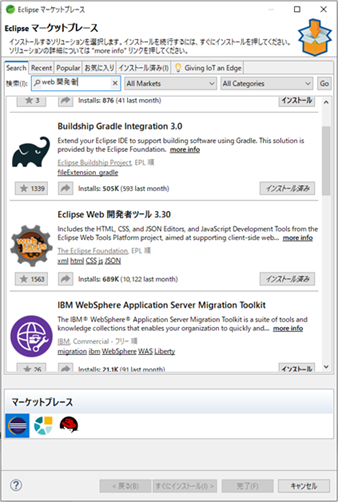 「Eclipse Project」でファセット検索したうえで、「Most Popular」でソートをかけると、お目当てのツールが出てくるということがわかりました。