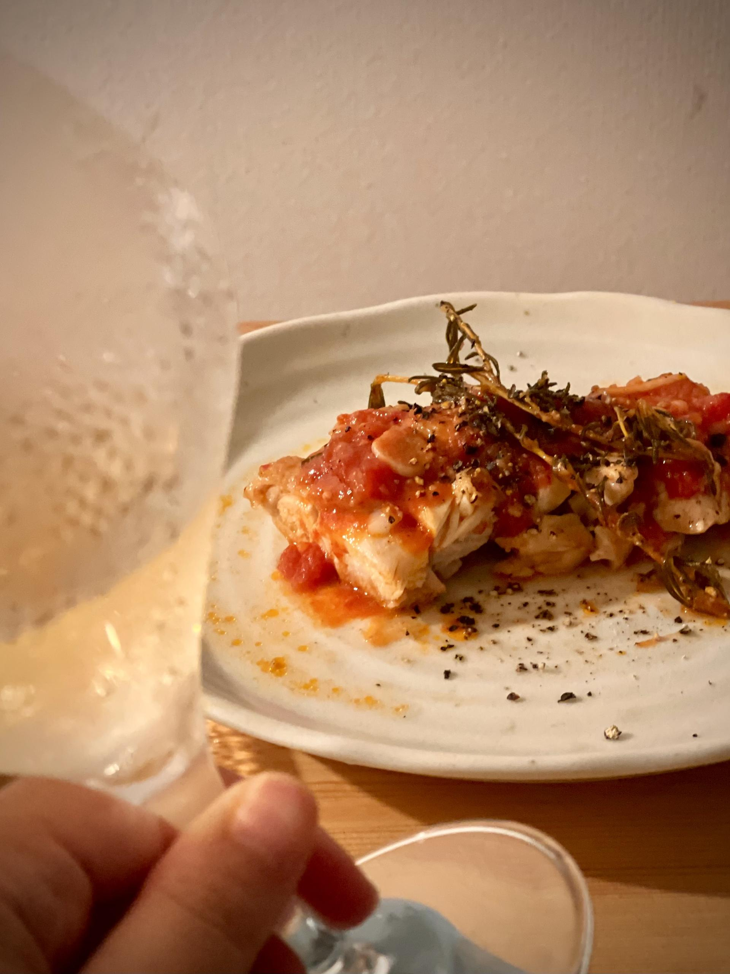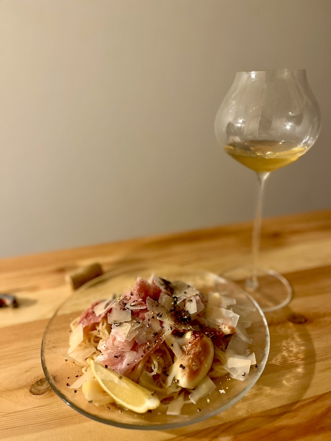 ワインに合わせて旬の野菜や魚を使ったおつまみやパスタを2人で作るのが日常です😊