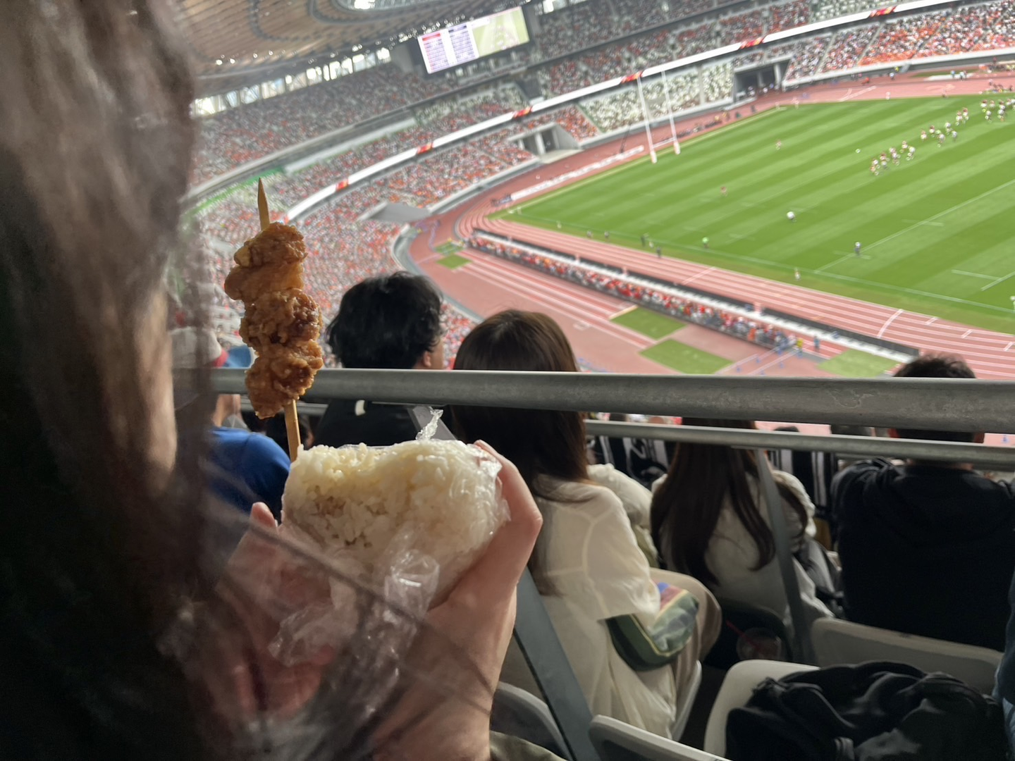 試合は始まってますが、おにぎり食べたり競馬を見たり前半は大忙しでした💦
