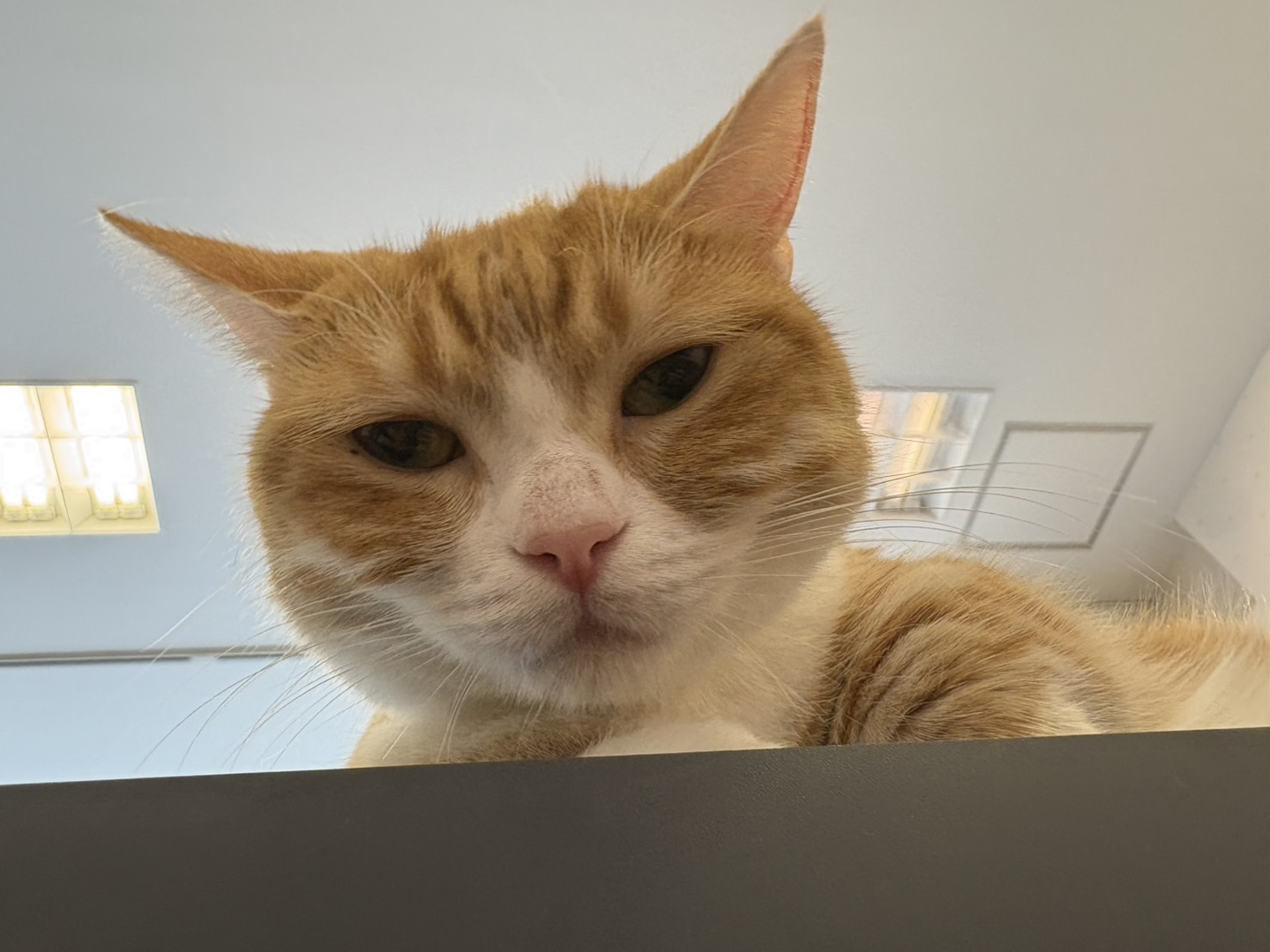 ↓私の推猫ラテちゃん🫶🏻 いつも本棚上でお昼寝してます。