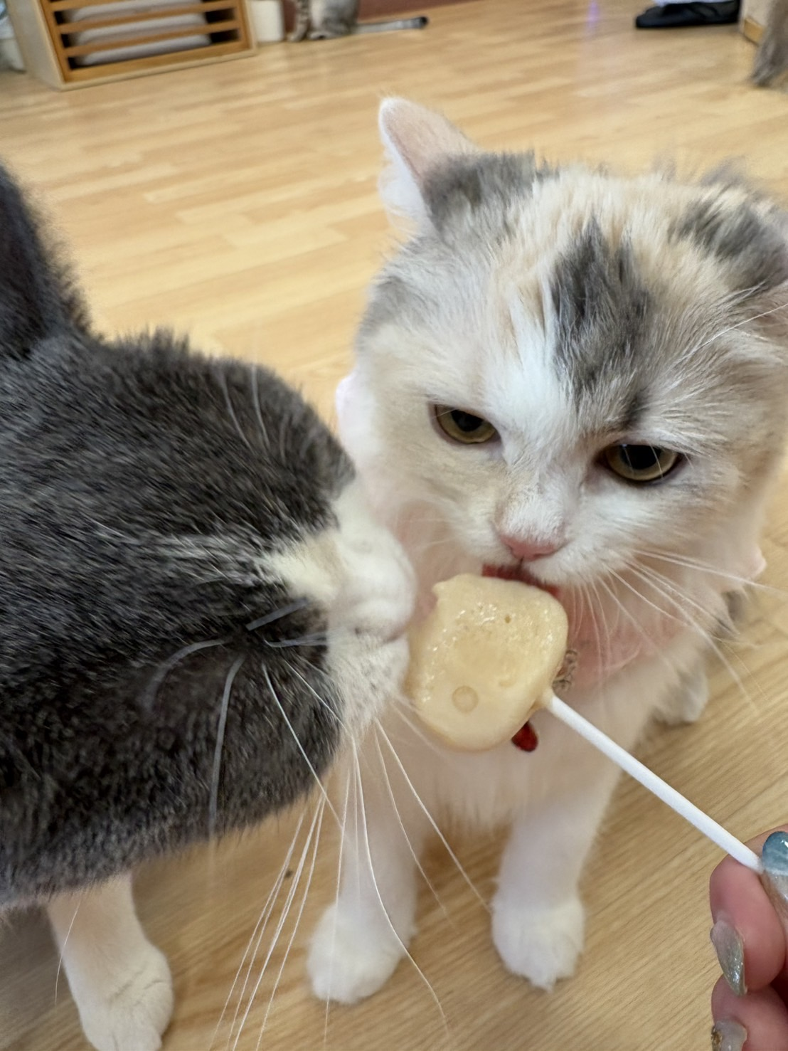 ↓ミルクアイスを2匹で仲良く食べてました笑