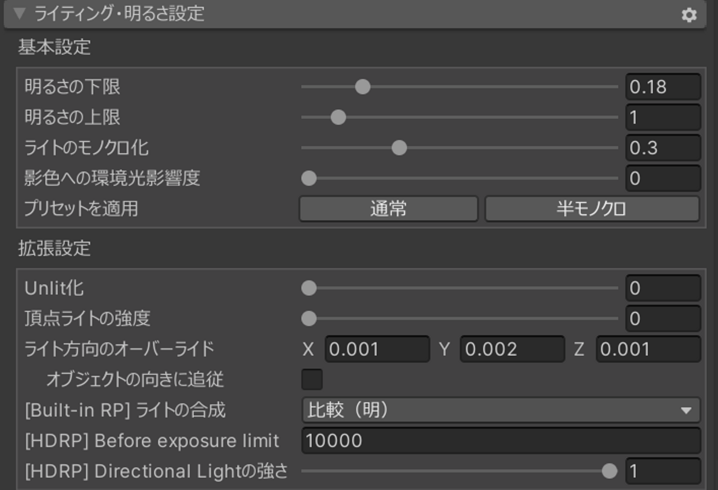 これによりアバターが暗くなりすぎたり、異様に暖色になるといったことを防ぐことができます。