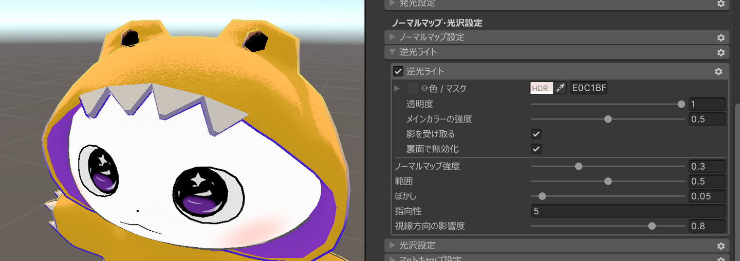 アバターの輪郭に添ったハイライトが欲しかったので、逆光を使用しハイライトを模してみました。