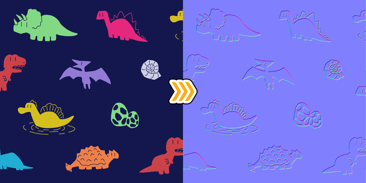 本来、凹凸感を表現するにはポリゴンを増やして凹凸を作り、そこに陰影がつくものなのですが、陰影情報が入っている画像を使い、モデル表面の法線(normal)を変化させることでポリゴンを増やさずに凹凸を表現することができます。