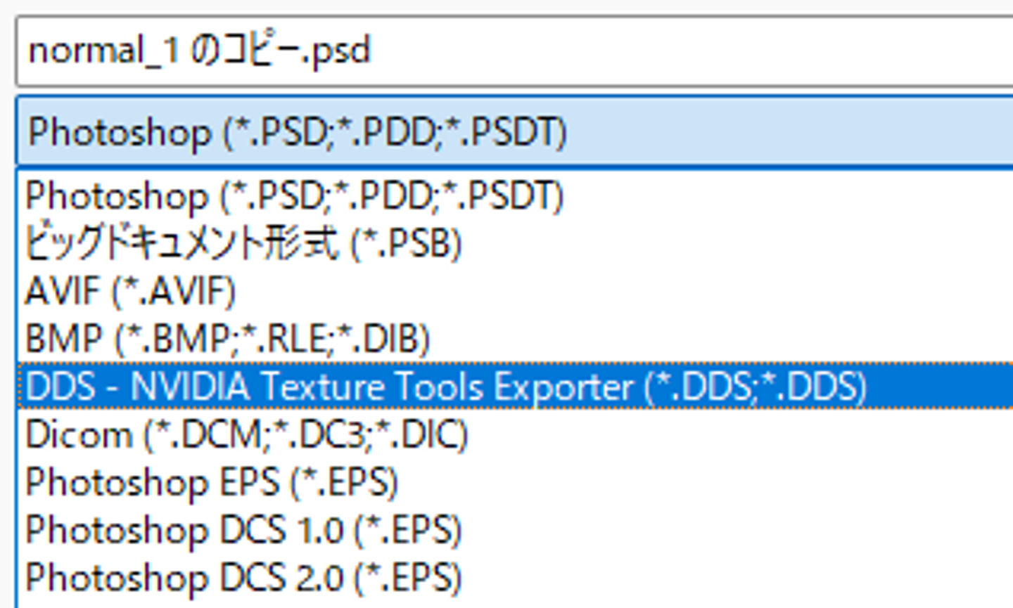 メニューバーのファイル→コピーを保存をクリックし、DDSを選んで保存します。