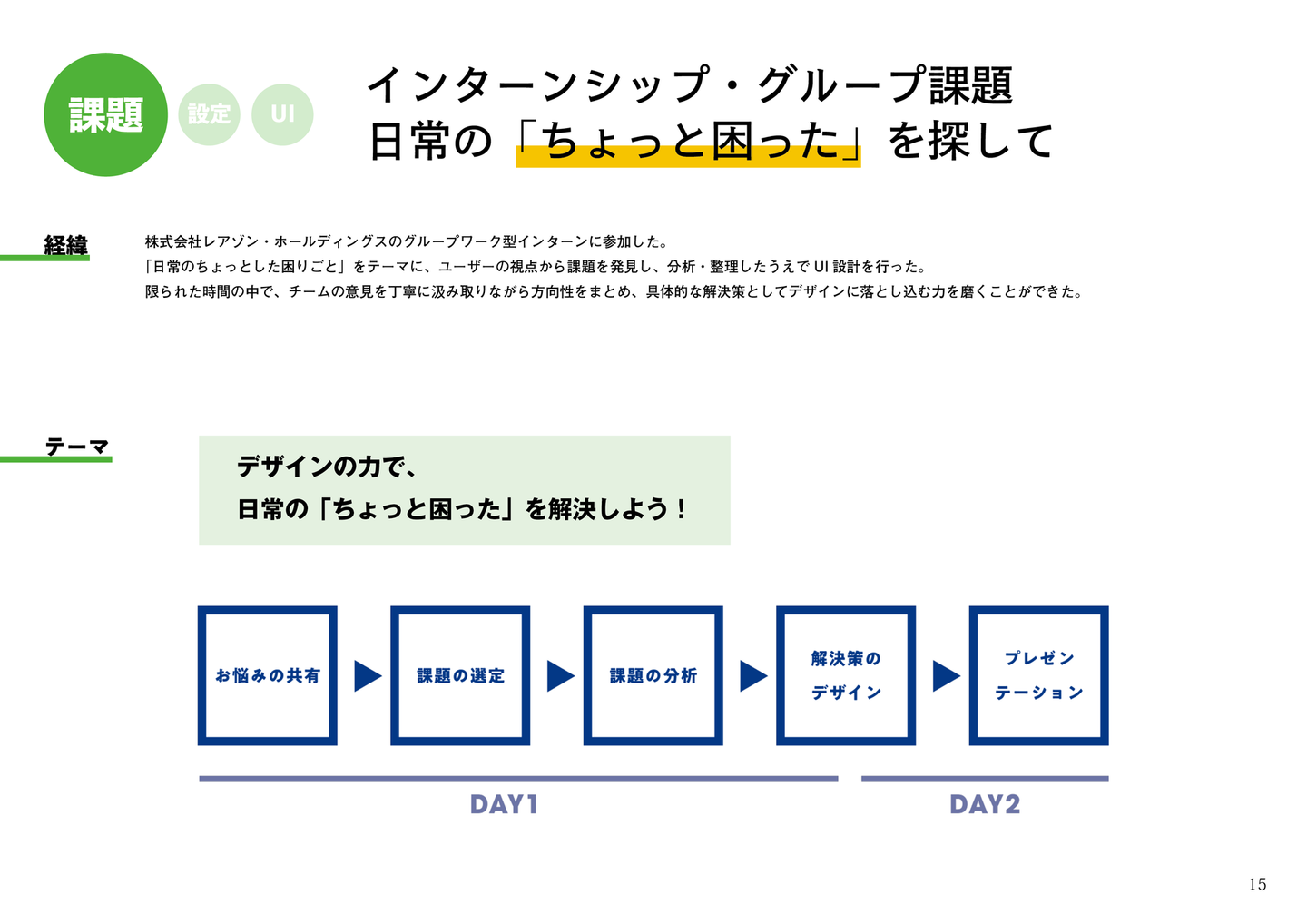 インターンシップで「日常の『ちょっと困った』を解決する」というテーマ課題にグループで取り組んだ。