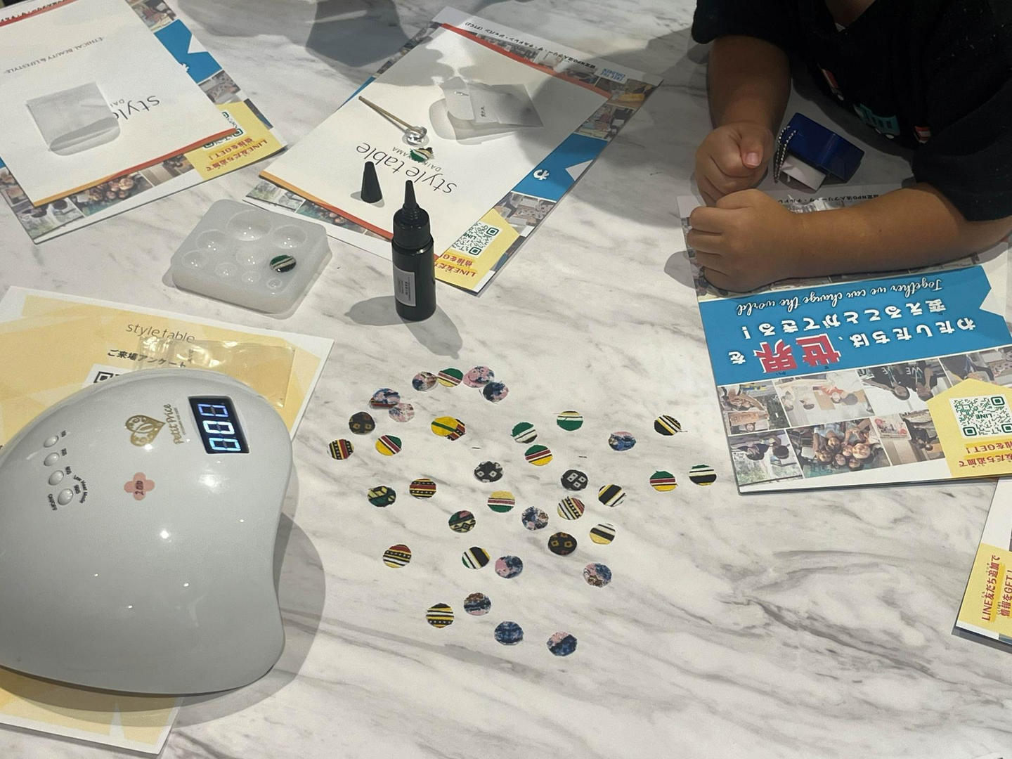 鮮やかな色彩と大胆な模様が特徴の布を使い、イヤリングやカフスを制作しました。参加者の皆さんは思い思いのデザインを楽しみながら、ものづくりの時間を楽しまれていました。また参加費の一部がFTCJの支援活動に活用される仕組みとし、体験が社会貢献につながる形を実現しました。