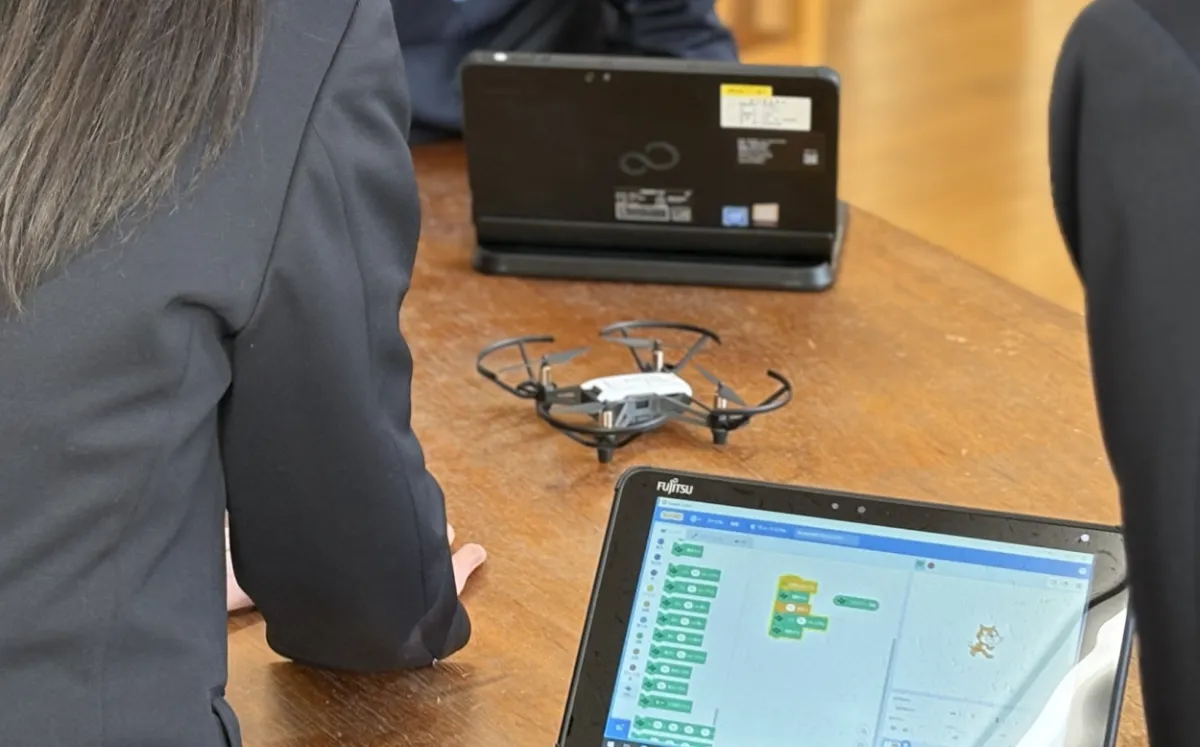 伊万里市教育委員会様の児童のプログラミングへの興味関心を高める試みのため、市内の中学校を訪問し、Scrachを使用して、ペアリングしたQumcumロボットやTelloドローンを動かす体験を行いました。