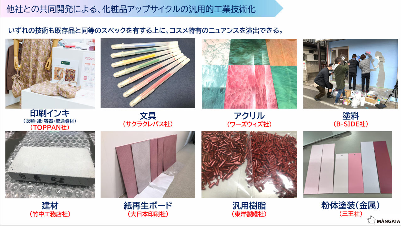 今では、廃棄化粧品からあらゆる工業技術へと昇華
