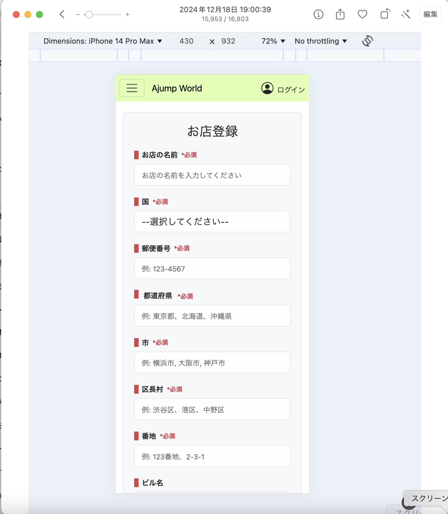 *2024年12月18日時点でのお店の登録画面の実装状況