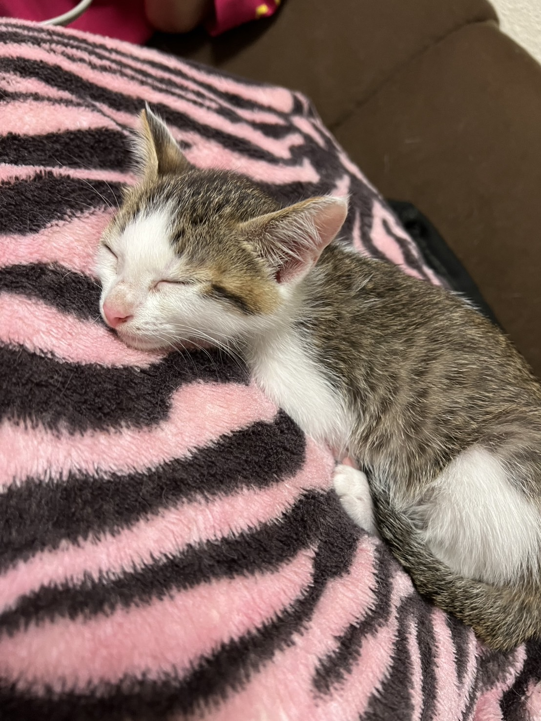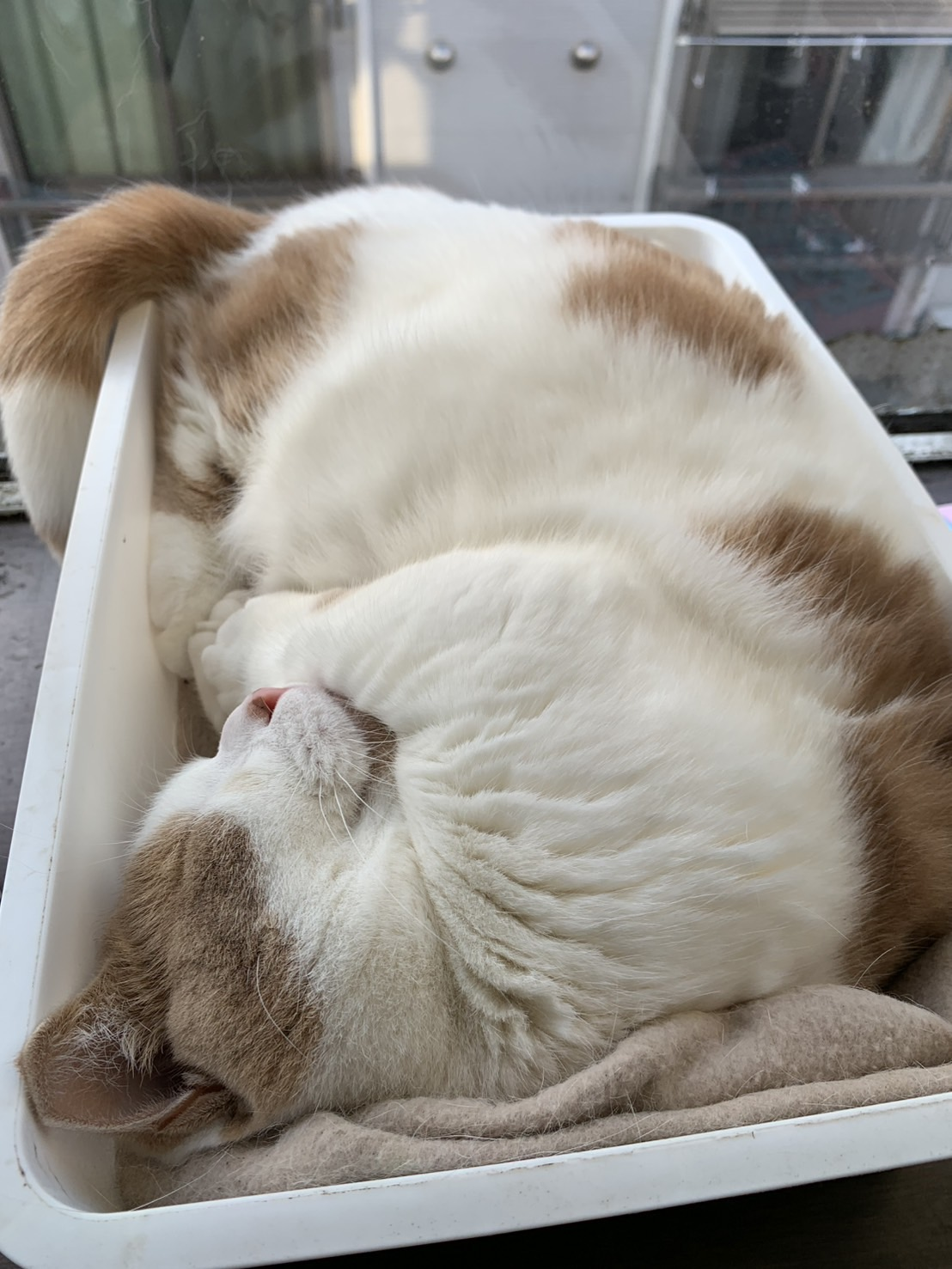 目を離すと絶対寝てる。一日20時間くらい寝てるんじゃないかな。(猫の睡眠は平均16時間)