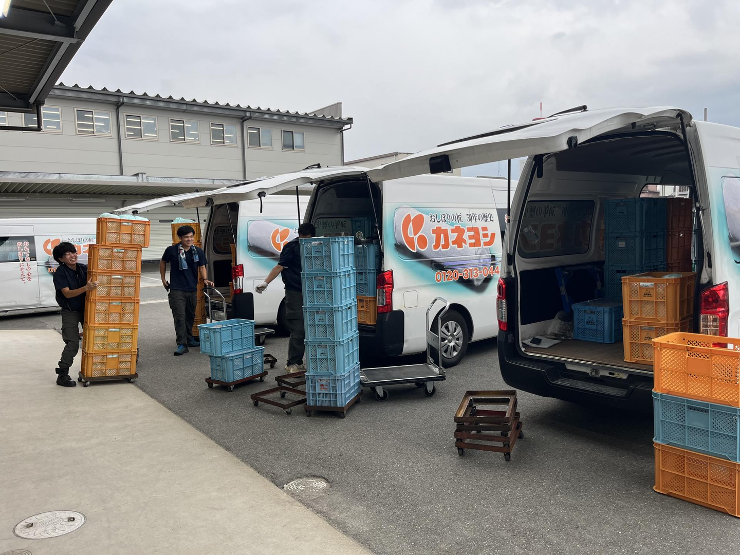 ルート営業の社員さんがおしぼりを回収し、