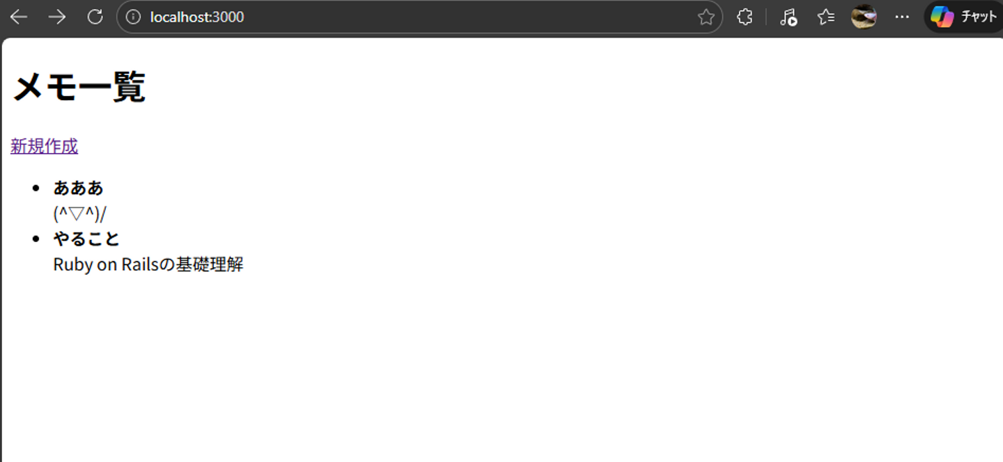 とてもシンプルですが、Railsの仕組みを実感できる良い第一歩でした。