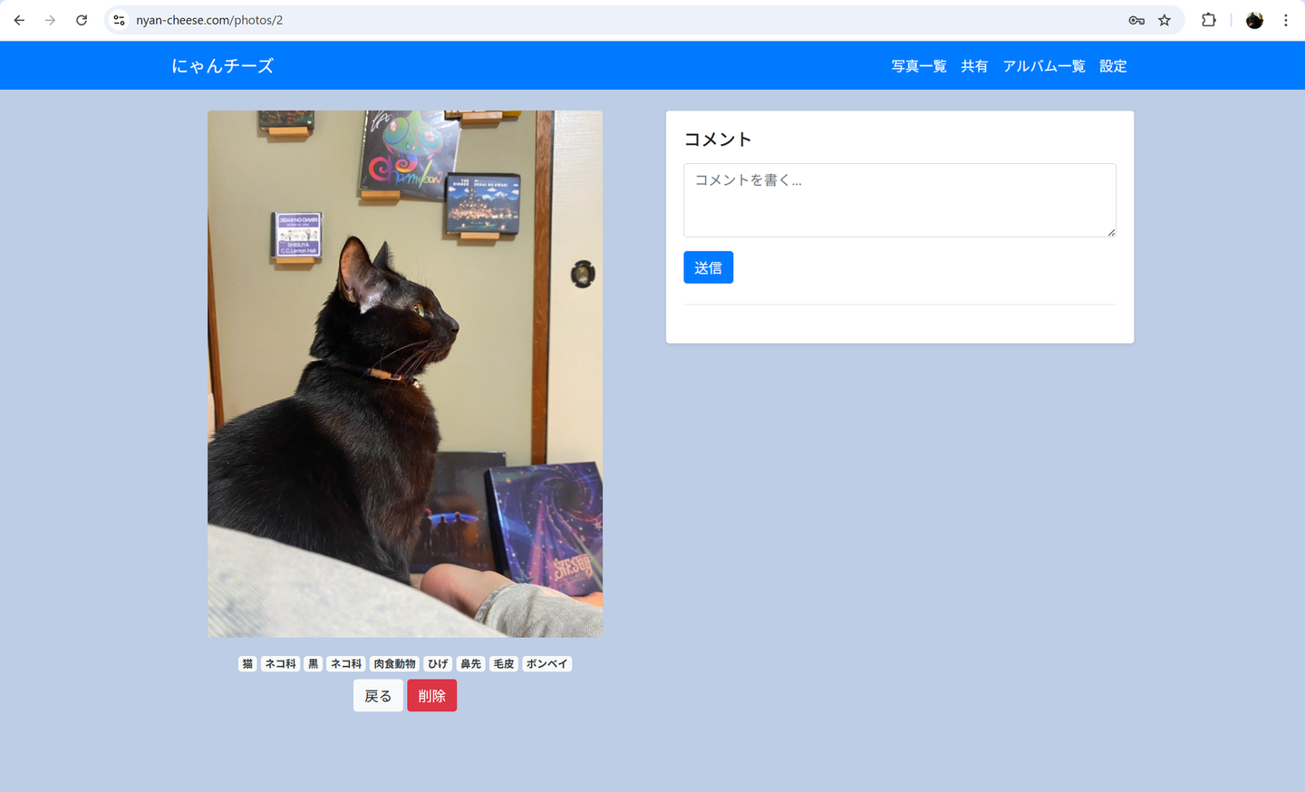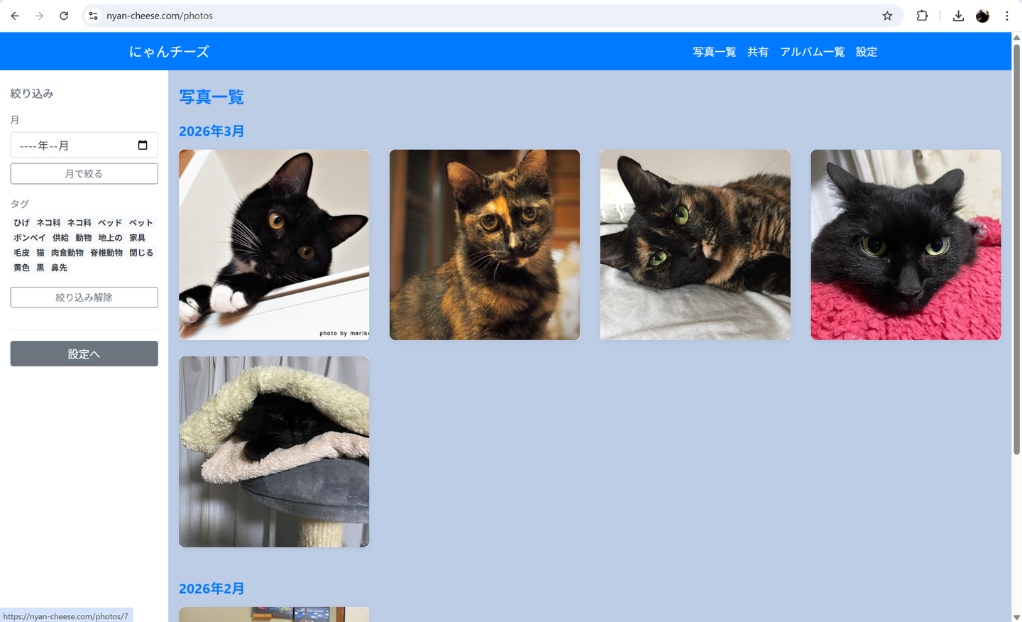 **猫の日常を記録するWebアプリ「にゃんチーズ」**です。