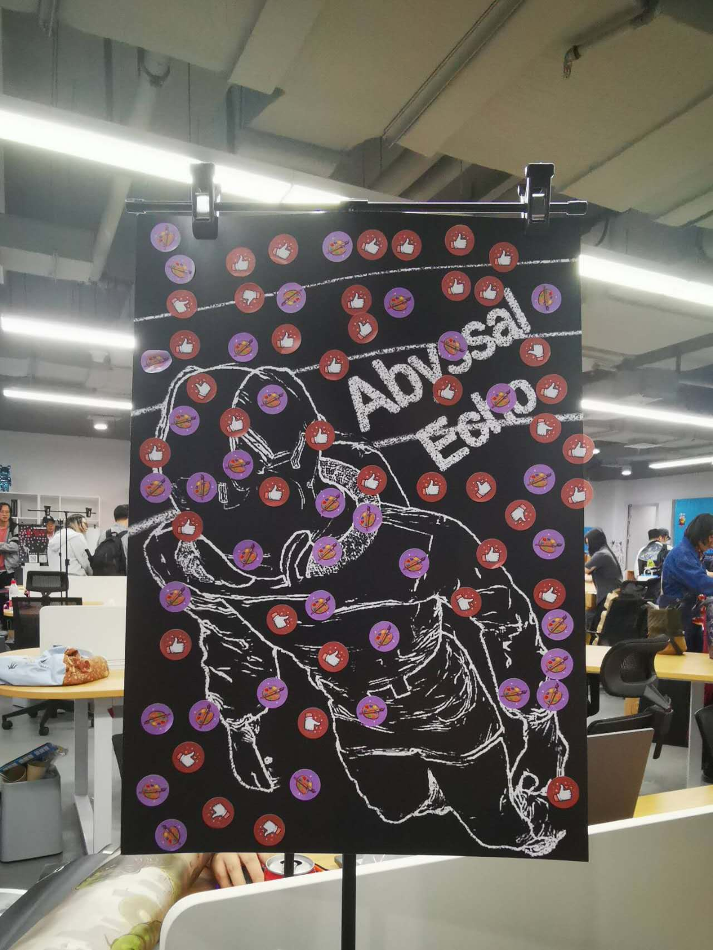 (別会場にて、来場者がまんべんなく貼って頂いたいいねシールと、グラフィックいいねシール。チームメンバーがそれぞれ中国の離れた省に住んでいるため、殆どの会場は彼が単独で出展を請け負っていたが、こうして写真をグループチャットに挙げて喜びと熱意を分かち合った。)
