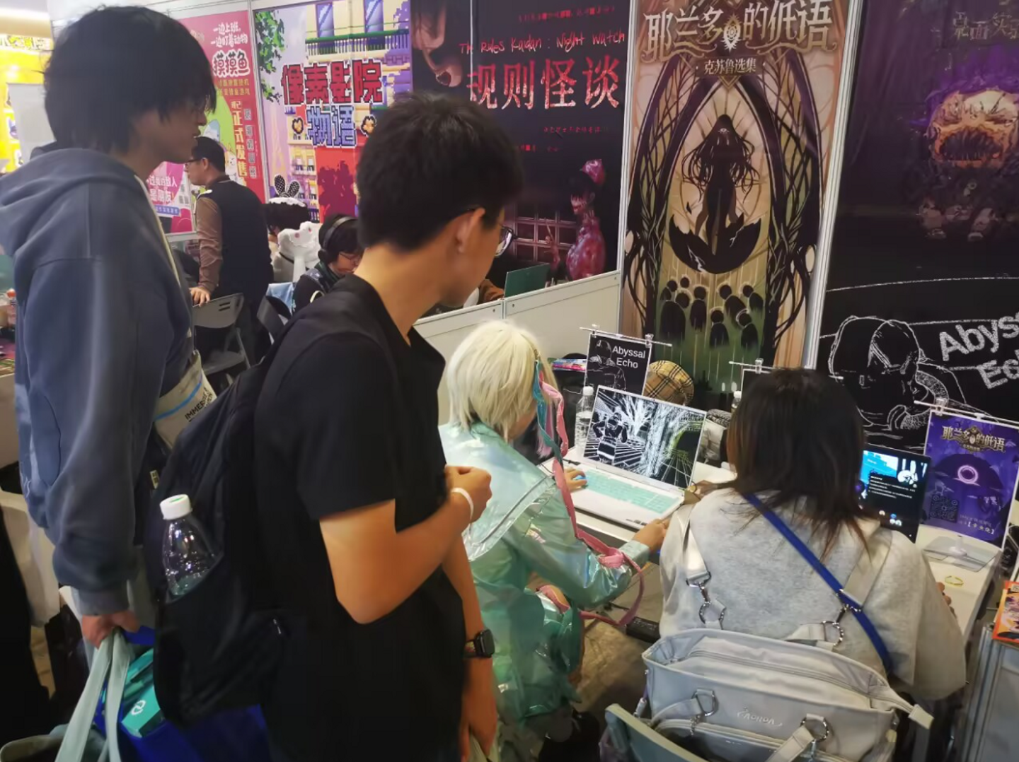 (展示会にて。後ろで他の人のプレイを見に立ち止まる人も)
