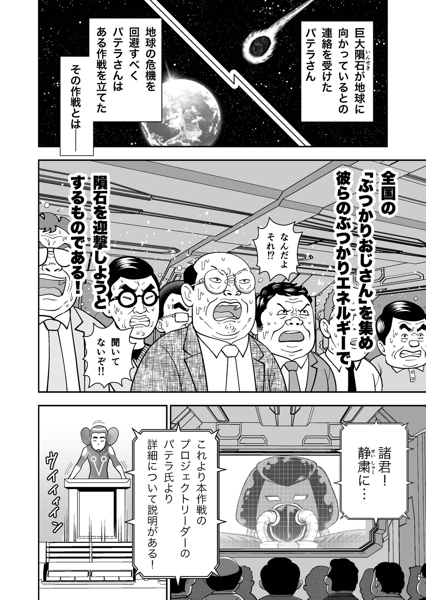 隕石を迎撃するべく集められた「ぶつかりおじさん」たち。