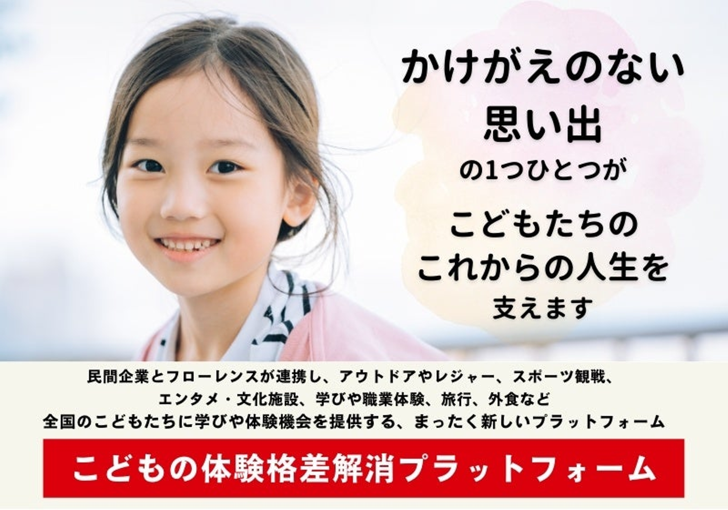どんな家庭で生まれても、体験を通じて、想い出が創れる日本にしたい。
