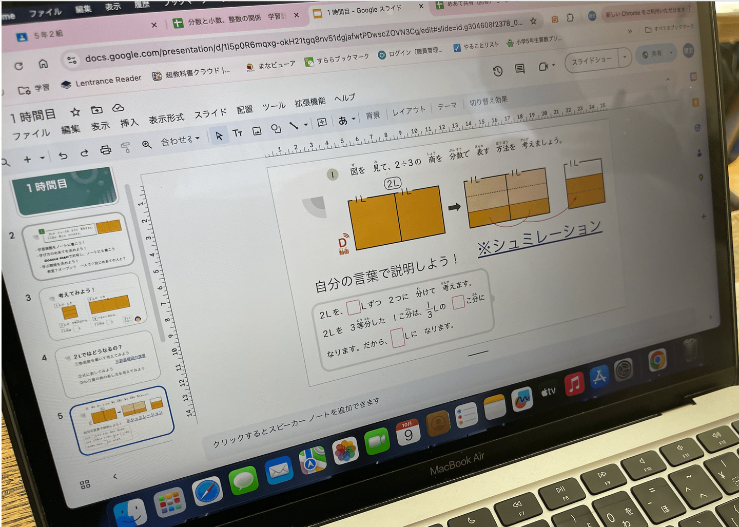 先生の一斉授業の代わりに、スライドシートの分かりやすい解説を子どもそれぞれが自分のペースで読む