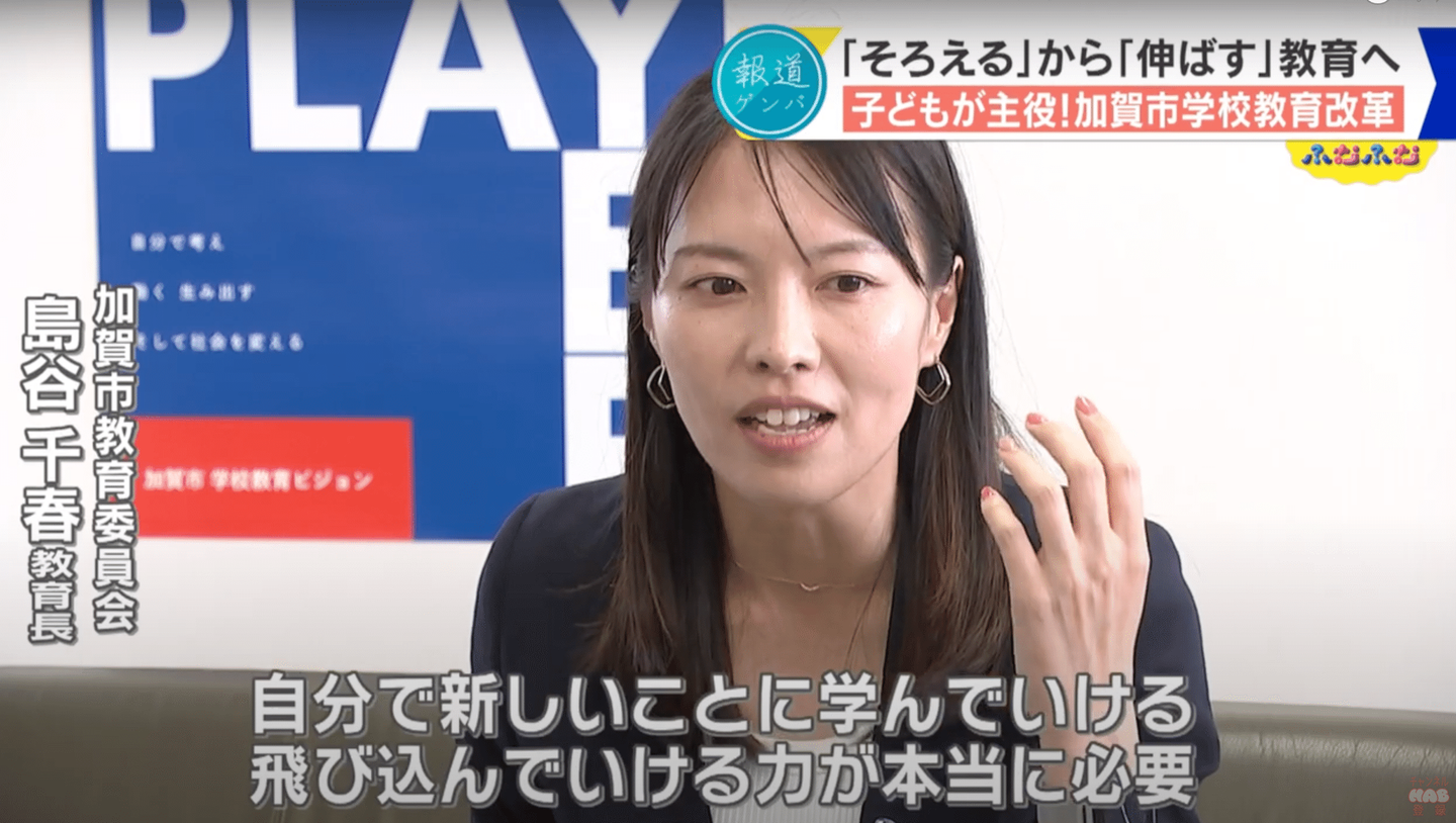 北陸朝日放送(HAB)「ふむふむ」報道ゲンバ:「そろえる」から「伸ばす」教育へ!加賀市学校 教育改革 より引用