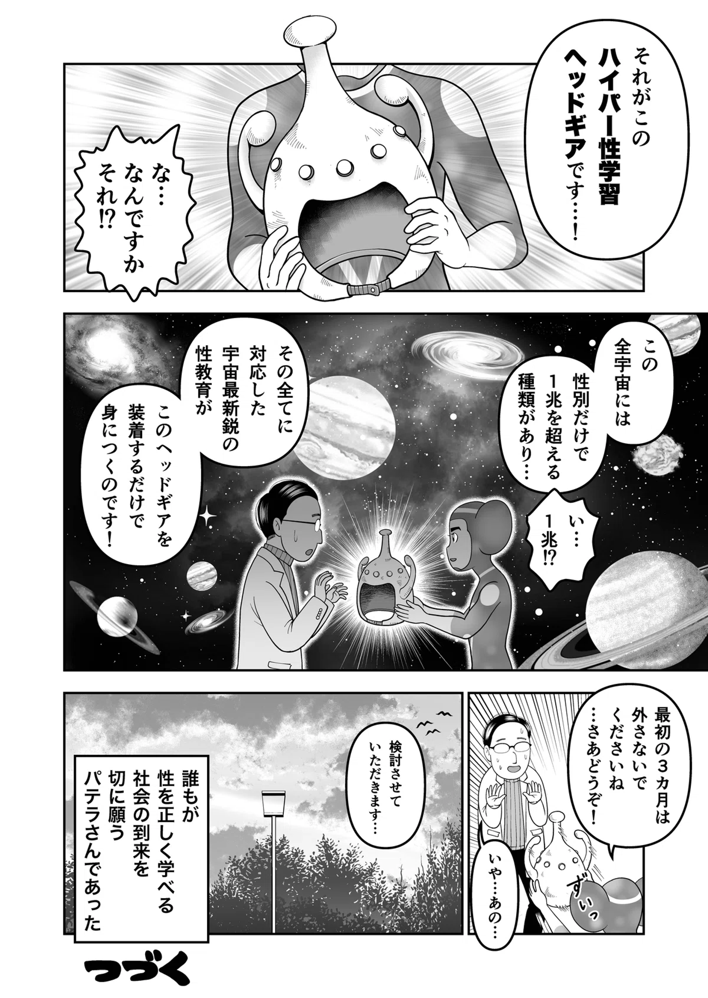 第47話「どうする?性教育(後編)」 Hiroki Komazaki CEO on 2025-04-04 僕が原案を担当させてもらっている、子育て支援が学べるギャグマンガ 「子連れ宇宙人パテラさん」待望の最新話公開です!性教育についてレクチャーを受けることになったパテラさん。日本の性教育の現状において考えるべき課題とは……?これまでの全連載はこちらでお楽しみいただけます! 子連れ宇宙人パテラさん 月刊誌『第三文明』で好評連載中の漫画「子連れ宇宙人パテラさん」。認定NPO法人フローレンス会長・駒崎弘樹さんが原案をつとめています。 本日8/1から、第51話「発達障害ってなんだ(中編)」が公開になりました。 息子のトトラが発達障害かもしれないと保育園の園長から言われたパテラさん。発達障害のことをよく知らないパテラさんは、育児丸さんにある場所に連れて行かれて......。 第47話「どうする?性教育(後編)」 Hiroki Komazaki マンガ 課題 性教育 子連れ宇宙人パテラさん 1 Likes Share 1 Likes