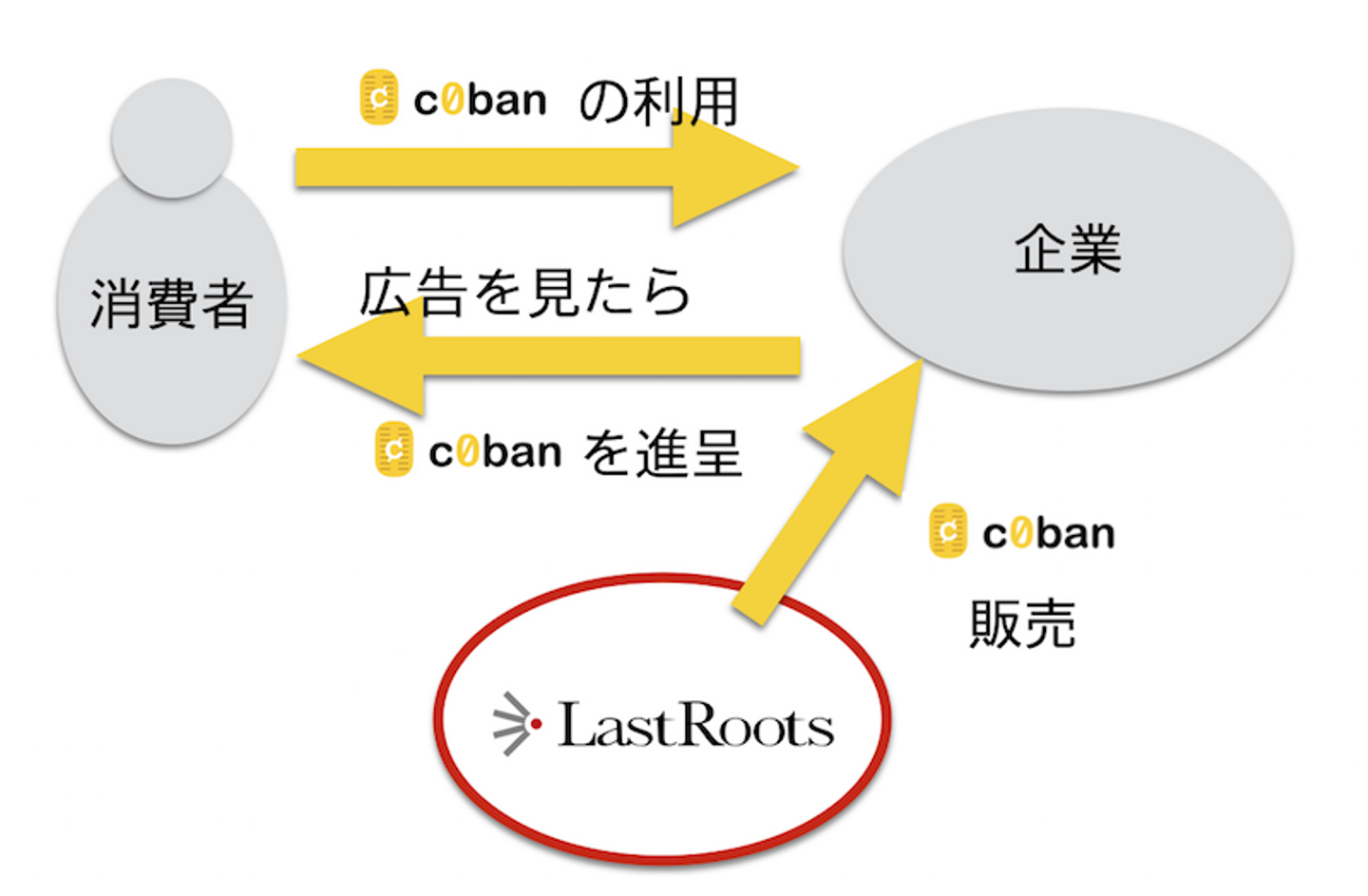 企業にとっては、最初に皆さんにあげるc0banというのは、現在の広告費と同じく、費用がかかっています。大きな違いは、その費用は、お客様である皆さんに企業が直接届けたため、皆さんがお店に来てc0banを使えば、実質的な費用がゼロに近づいていくことになるのです。