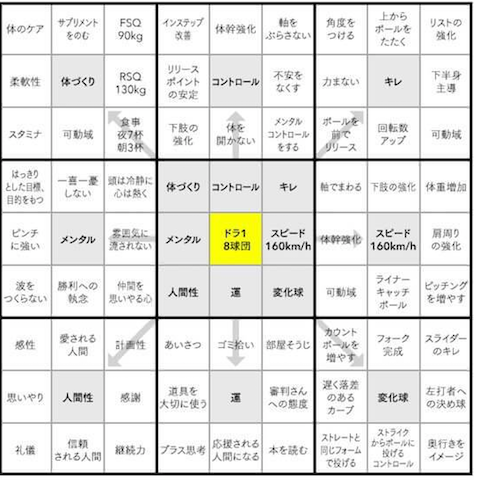 上の9×9の画像ですね。ちなみにこれは大谷翔平投手が高校生の時に設定したものらしいです。