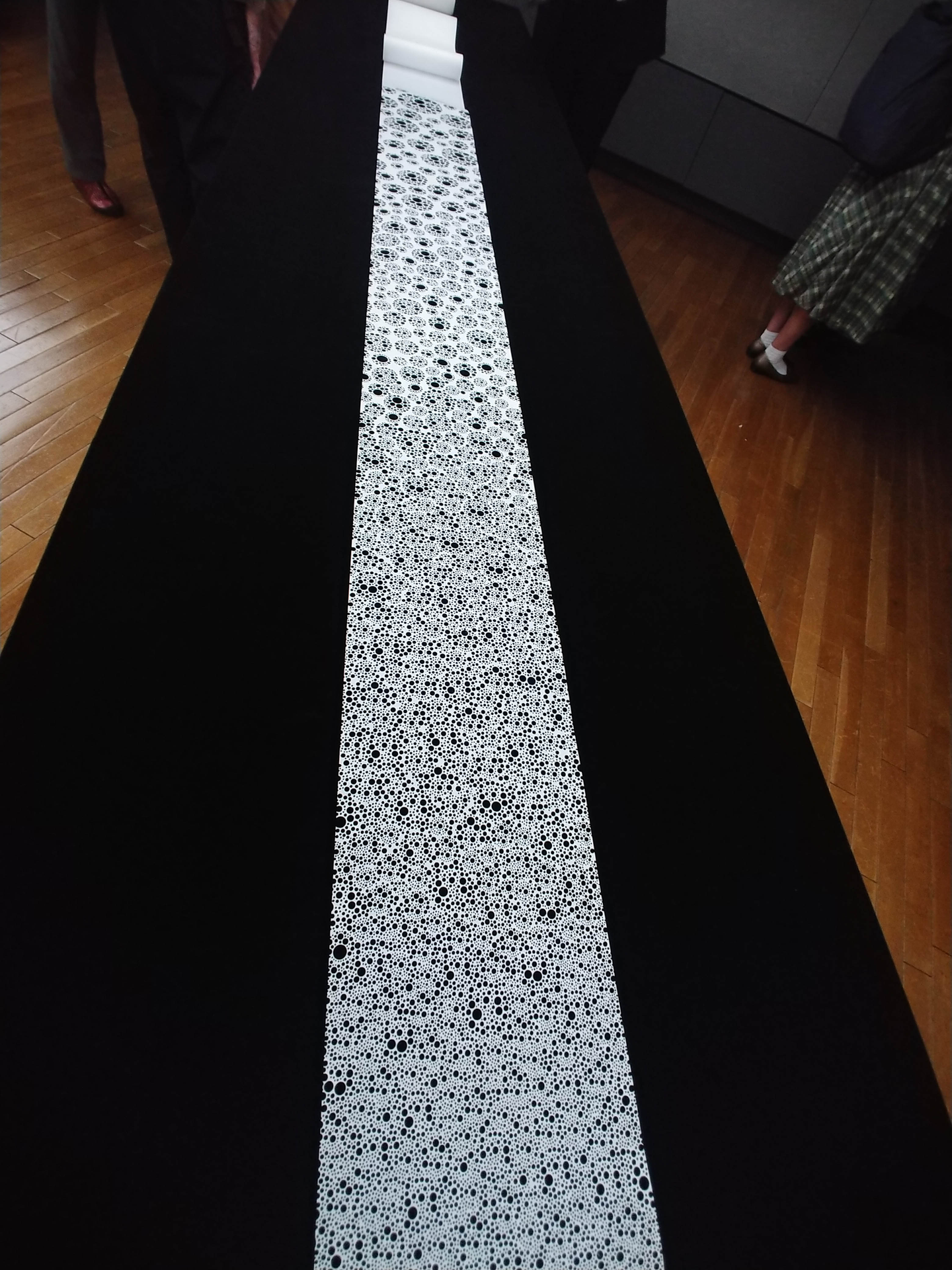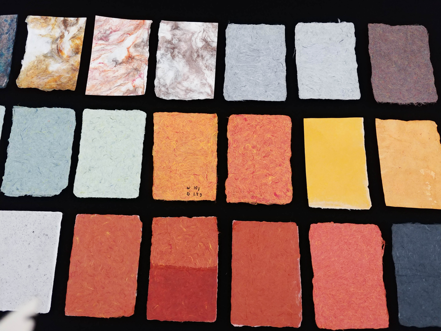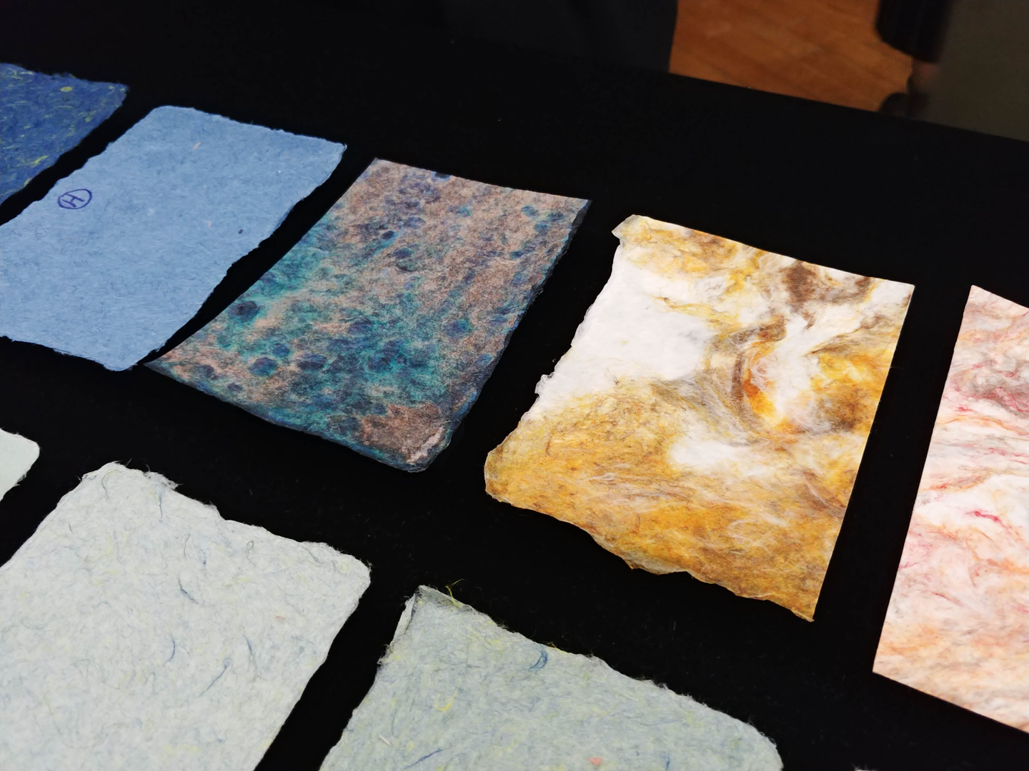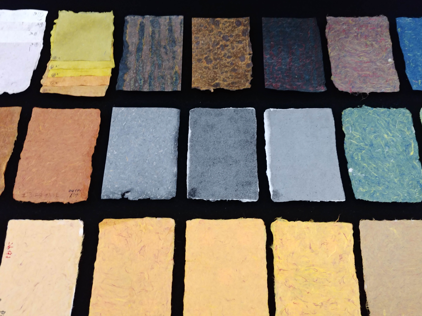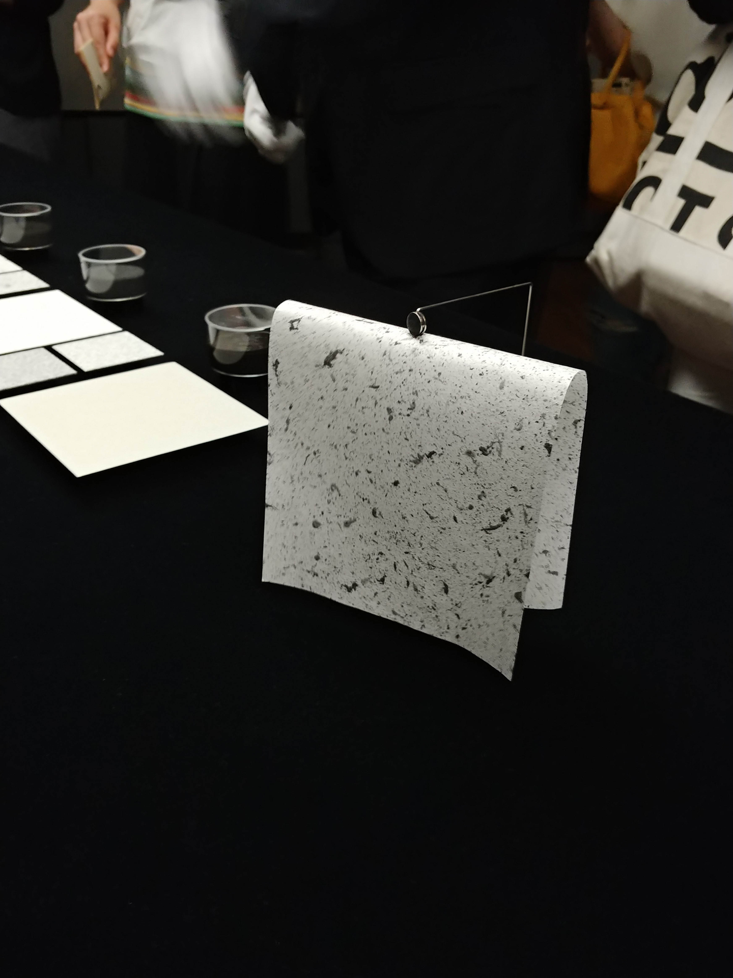 会場の外、階段の部分では珍しい紙を自分でちぎって持ち帰ることができるようになっていました。本当に普段あまり触れないような珍しい紙が並んでいて触り心地や温度、粘りなどの特徴を体感することができます。