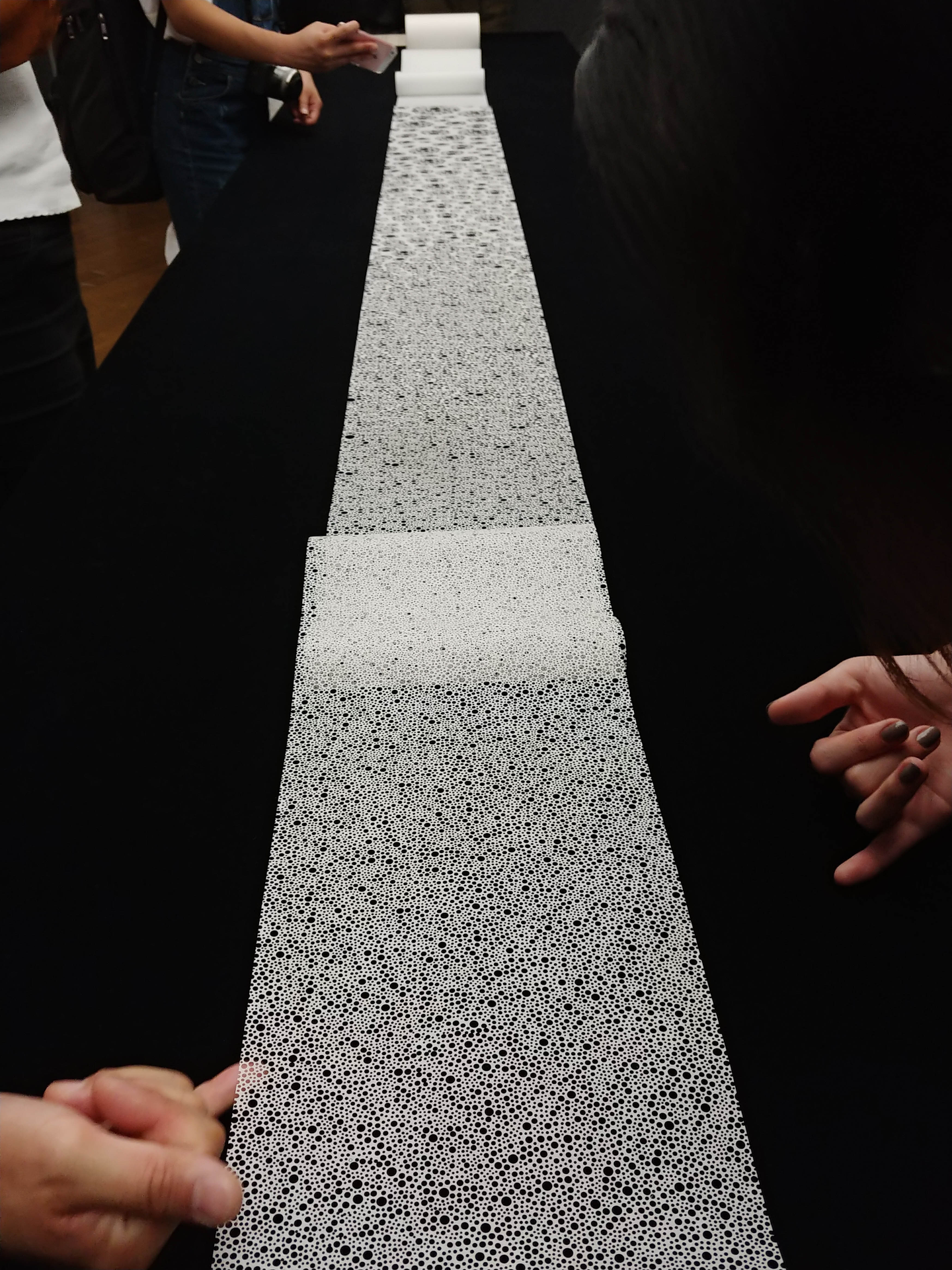 たしかに半透明、こういう解釈もあり!この作品はとにかく製造工程のムービーが面白かった。レーザーで不規則な穴があいていく様子はずっと見てられる。