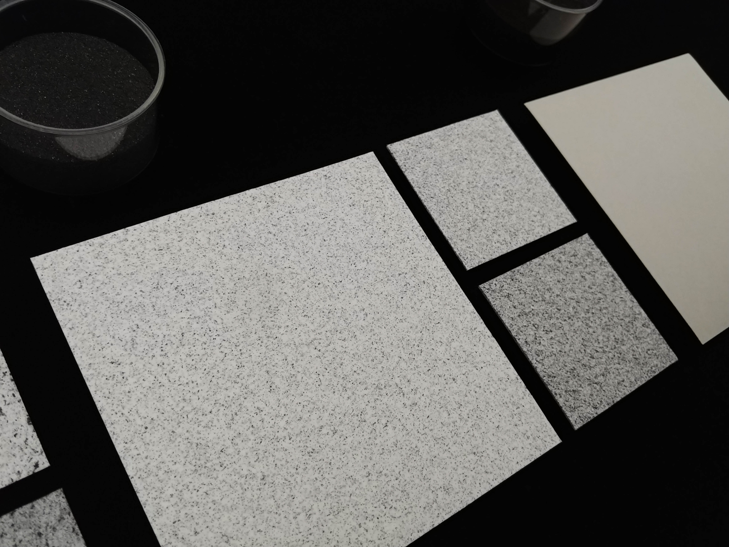 プラスチックでも海水や竹、紙を混ぜ込ませて新しい機能や使い道を提案する取り組みが多くありますが、こちらはフェライト粉や砂鉄を混ぜ込んだその名も“動紙”