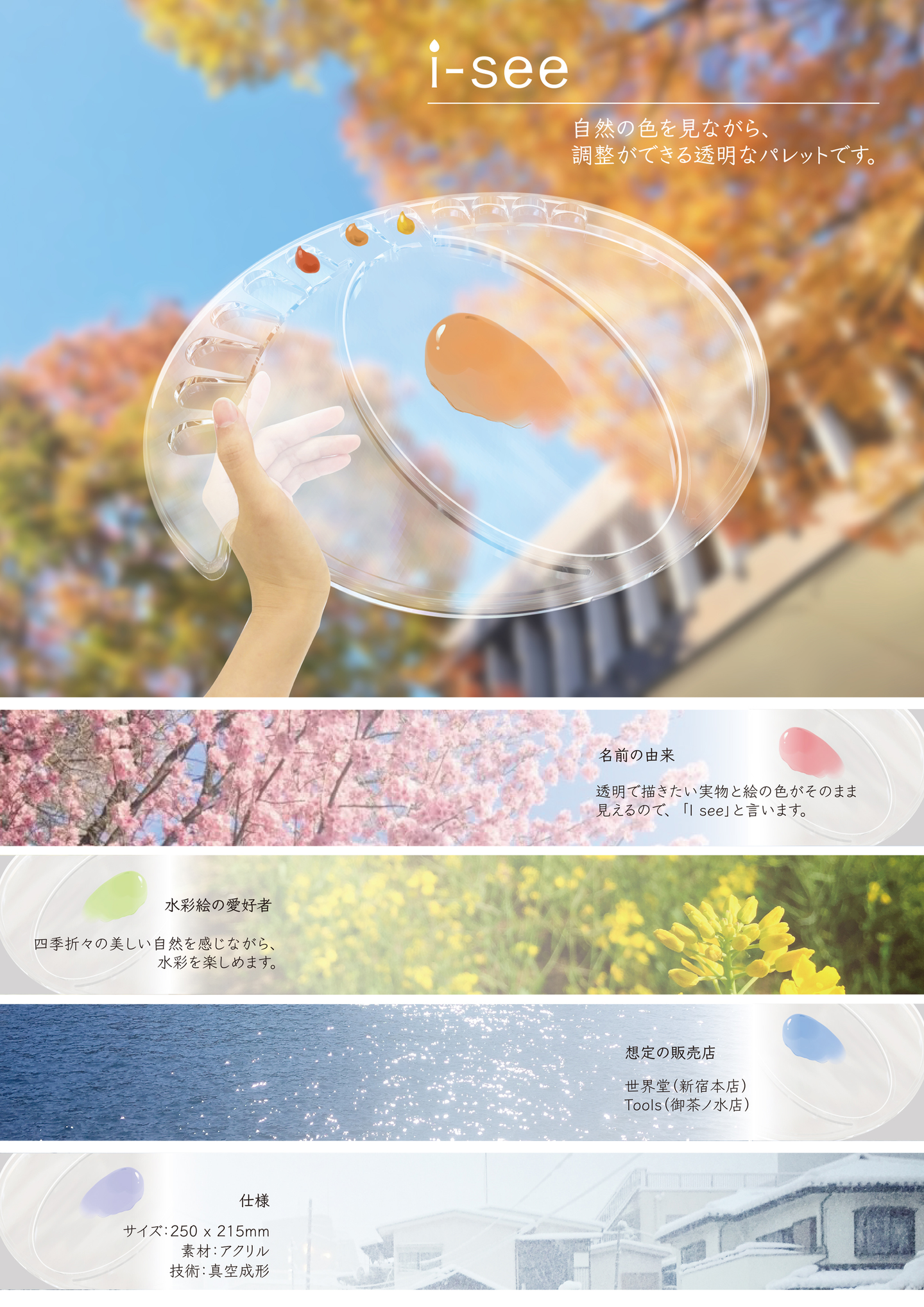透明な水彩用パレット(I see) Linko Hanaki Other designer on 2018-09-15 OMさん(樹脂精密切削加工なら株式会社オーエム)との企業連携課題です。 透明な水彩用パレット(I see) Linko Hanaki デザイン CAD 企業課題 Share